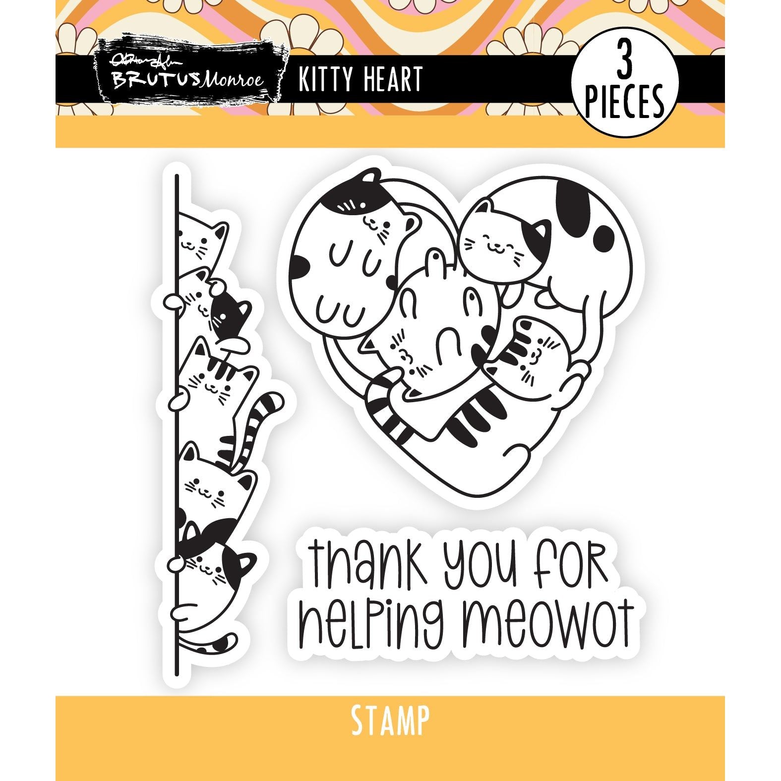 The Kitty Heart Clear Stamps from the Groovy Darling Collection are a delightful choice for adding whimsy to your crafting projects. This 4 x 4-inch set is made from clear, photopolymer material which ensures crisp, detailed impressions. It includes three pieces featuring charming designs. The set showcases four kittens arranged playfully to form a heart shape, kitties peering curiously around a corner, and the playful sentiment "thank you for helping meowot." These stamps are perfect for personalizing thank-you cards, embellishing scrapbook pages, or enhancing any project with a touch of affection and humor.