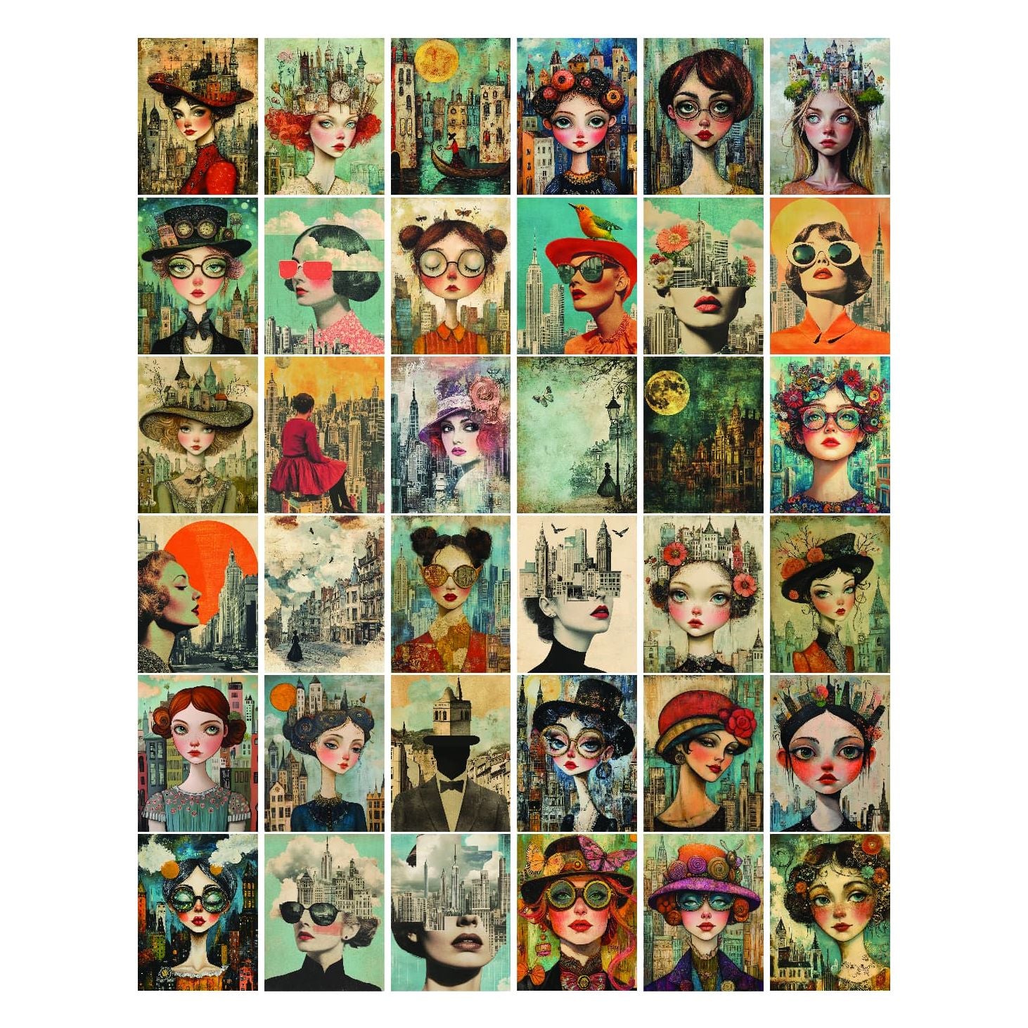 Brutus Monroe Uptown Girl Creative Cards are part of the City View Collection. This pack includes 36 vibrant 3 x 4-inch cards featuring charming images of girls dreaming of the big city. The designs include urban dwellings, buildings, flowers, and artsy depictions of women and the cityscape. These versatile cards are perfect for scrapbooking, journaling, cardmaking, and mixed-media projects, adding a creative touch to your crafting endeavors.