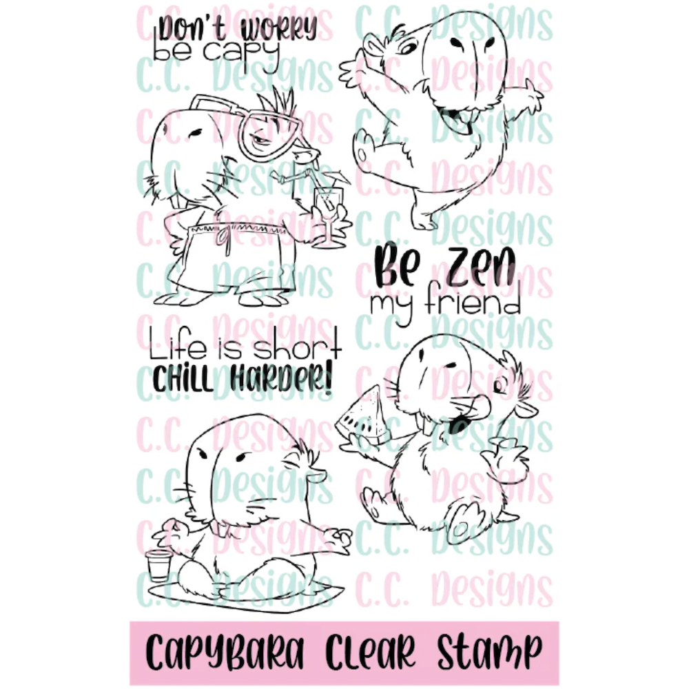 The C.C. Designs Capybara Clear Stamp Set (4 x 6 inches) is full of easygoing vibes and laid-back charm! Featuring four adorable capybara illustrations—sipping drinks, meditating, dancing, and snacking on watermelon—this set is perfect for summer cards, relaxation themes, or just bringing a smile.