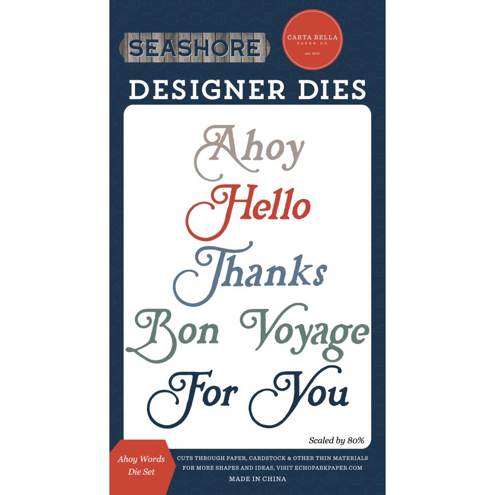 Carta Bella Ahoy Word Dies are versatile tools that can enhance your projects, whether it be cards, scrapbooks, journals, or more. These script sentiment dies are compatible with most die cutting machines, making them a convenient addition to your crafting supplies. With endless possibilities, these dies are sure to add a professional touch to your projects. This package includes one die set.