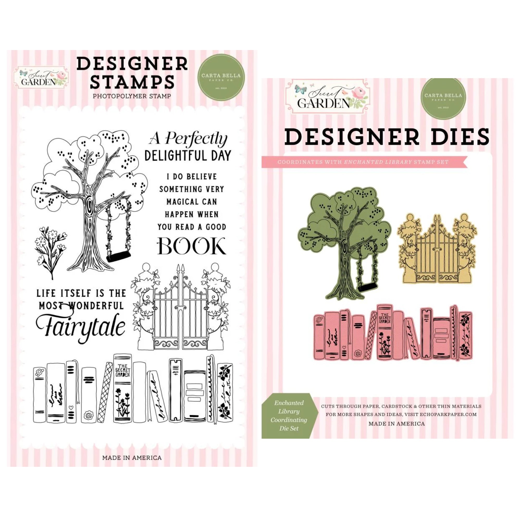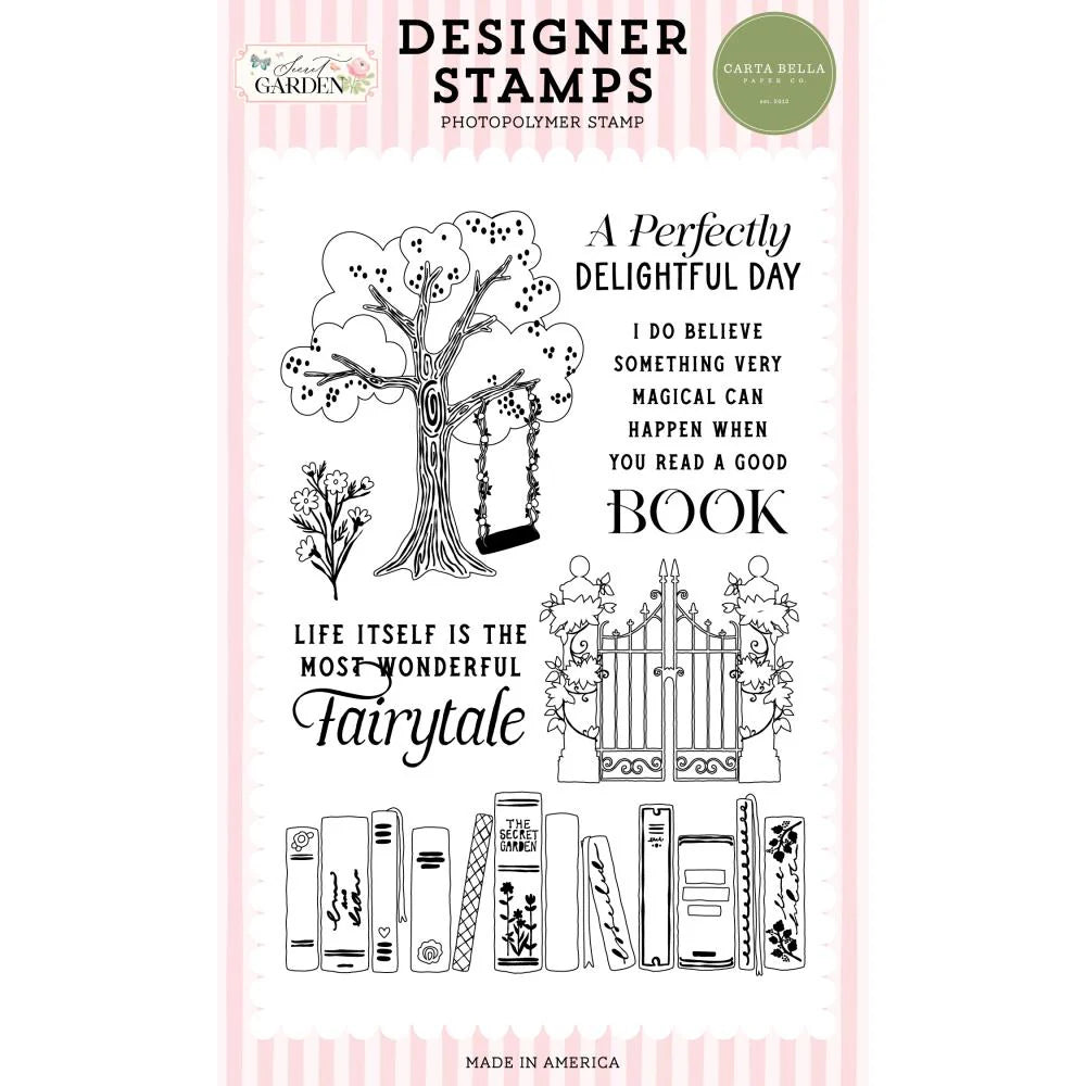 Elevate your crafting with Carta Bella Enchanted Library Clear Stamps! Perfect for cardmaking and scrapbooking, these high quality stamps add stunning designs to any project. With detailed imagery including books, a gate, tree with swing, and flowers, this 7-piece set is a must-have. Use with the included coordinating dies for endless possibilities.