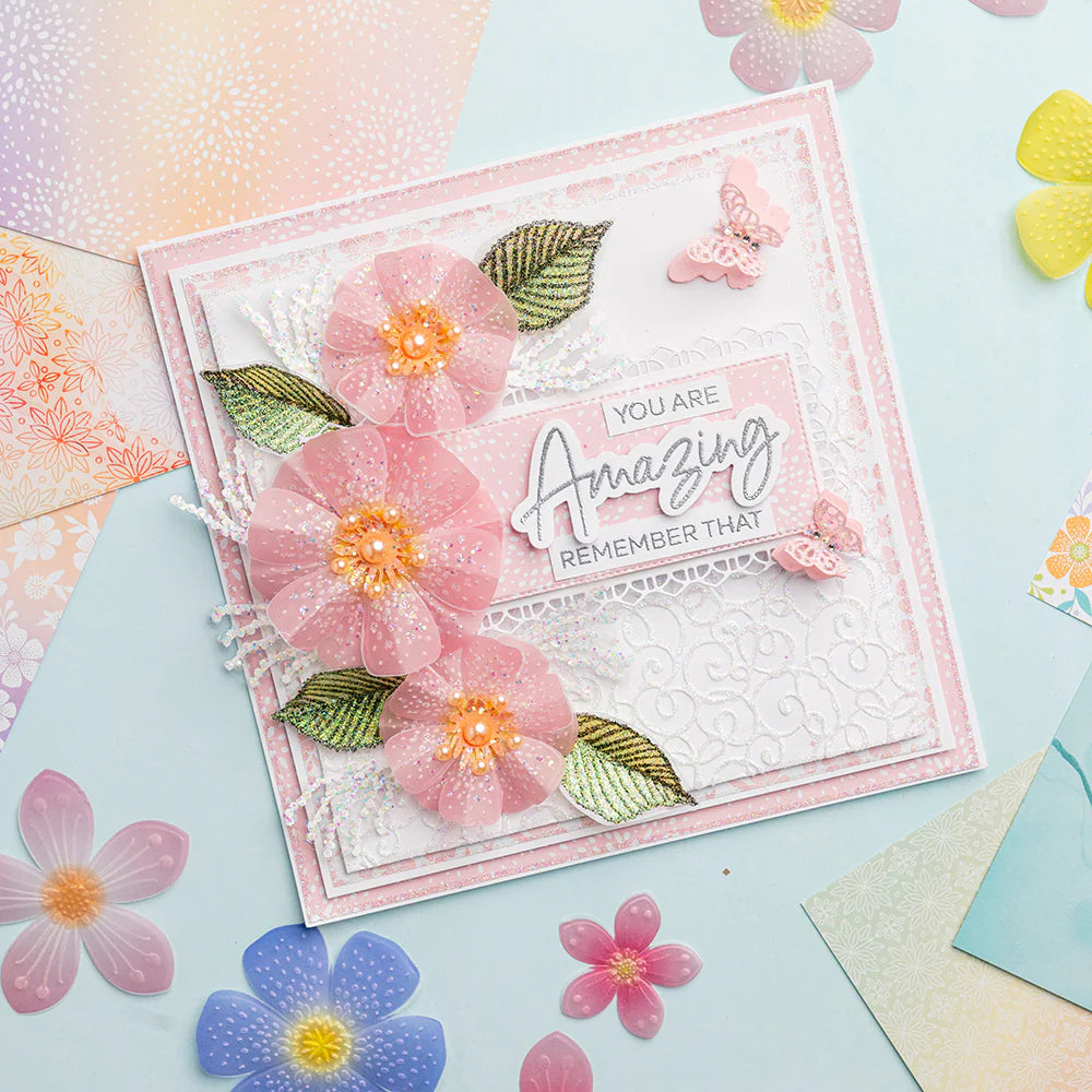 Designed for effortless coordination, the flowers on the embossing folder align perfectly with the stamps, which in turn match the outline dies precisely. The result is beautifully layered, dimensional blooms with a polished, professional finish.