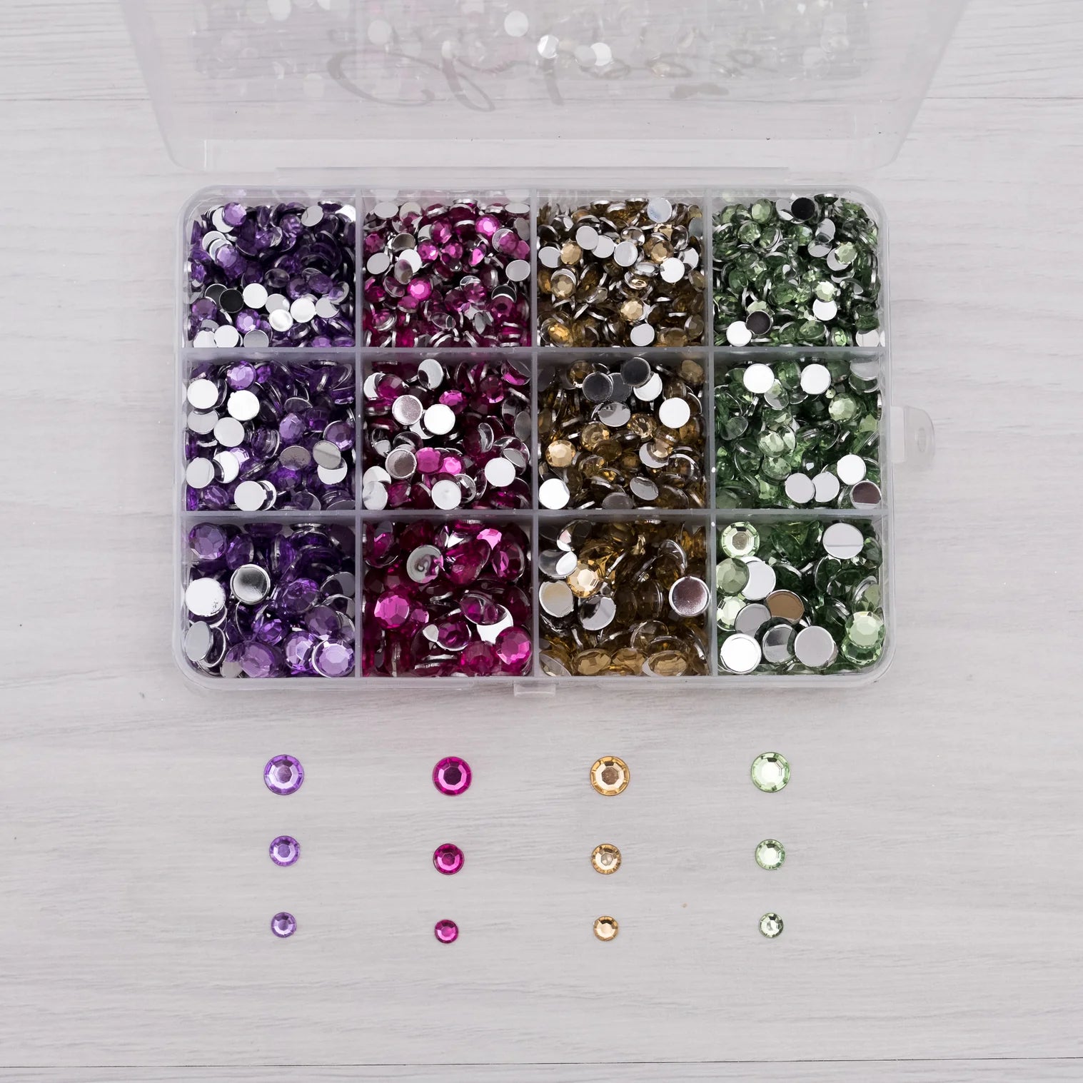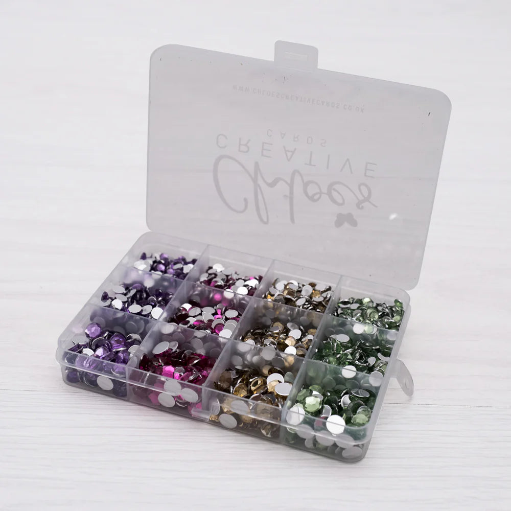 Chloe's Creative Cards Bling Box Beautiful Bouquets, part of the Floral Build a Bouquet Collection, is a versatile embellishment set perfect for a variety of creative projects. This box includes 2,300 individual flat-backed acrylic rhinestone gems in 5mm, 6mm, and 8mm sizes, featuring a stunning color palette of purple, pink, amber, and green. Ideal for bulk papercrafting, these gems add sparkle to wedding stationery, party invitations, thank-you cards, scrapbook layouts, and home décor projects. Their varying sizes make them perfect for highlighting flower centers, creating decorative borders and accents, and enhancing your designs with elegant, shimmering details.