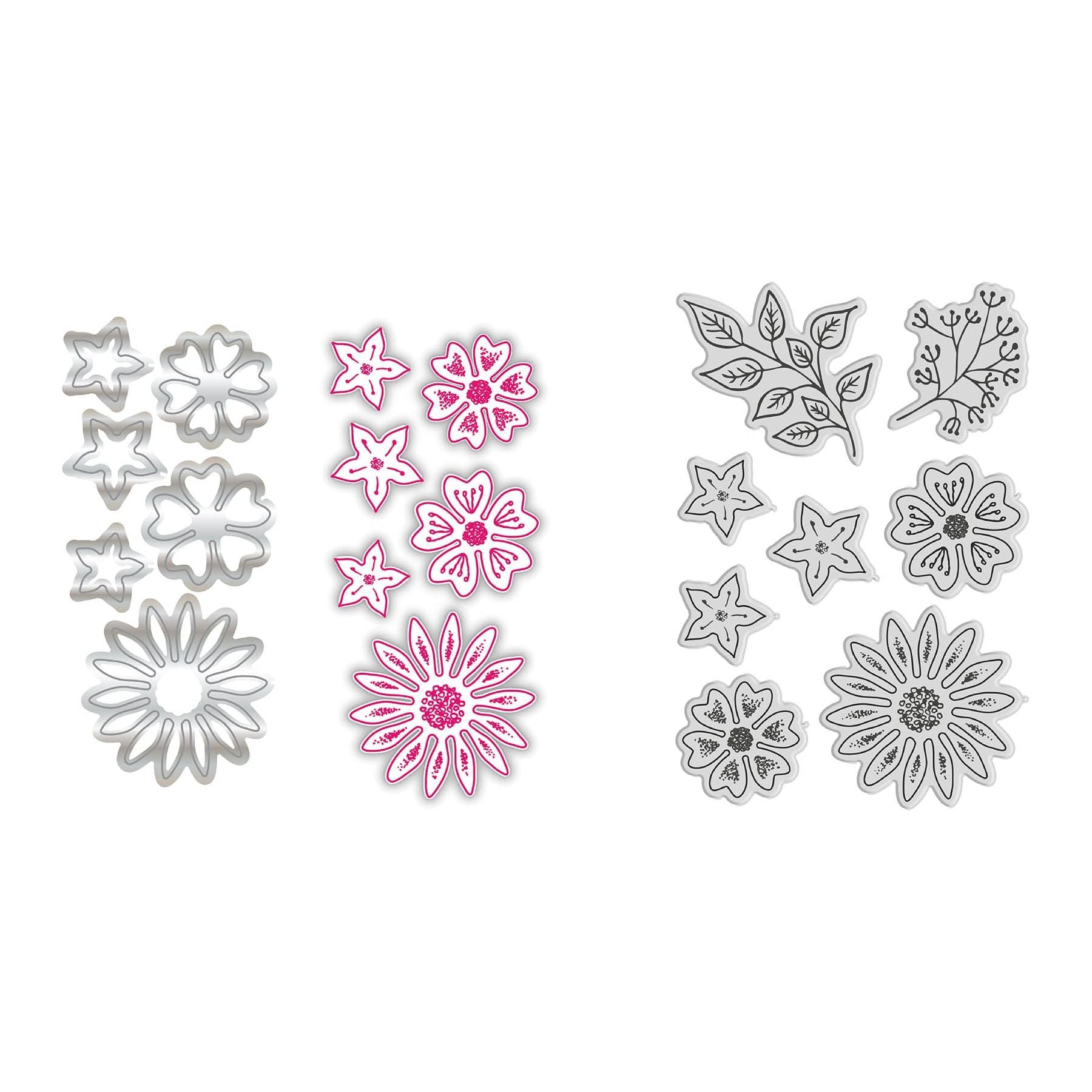 Chloe's Creative Cards Daisy Elements Die and Stamp Set, part of the Daisy Collection, is perfect for adding a floral touch to your cards. This set includes 8 photopolymer stamps and 6 metal dies. The largest die measures approximately 1.3 x 1.3 inches (3.3 x 3.3 cm). The stamps feature detailed daisy blooms in a variety of sizes, and each coordinating die cuts around the design while leaving the center intact so you can lift the petals for added dimension. The flowers are perfectly sized to complement the Dancing Daisy Cut and Emboss Folder (c-cemb-danced) and the Heartfelt Daisy Cut and Emboss Folder (c-cemb-heartd), making it easy to create layered, cohesive floral scenes.