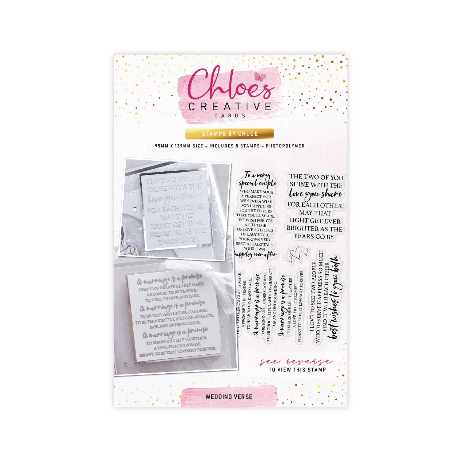 Chloe’s Creative Cards Wedding Verse Clear Stamps features elegant imagery and heartfelt sentiments, perfect for celebrating the union of two hearts. Whether used as inserts for wedding cards or as a main focal point, these beautiful verses add a meaningful touch to any creation.