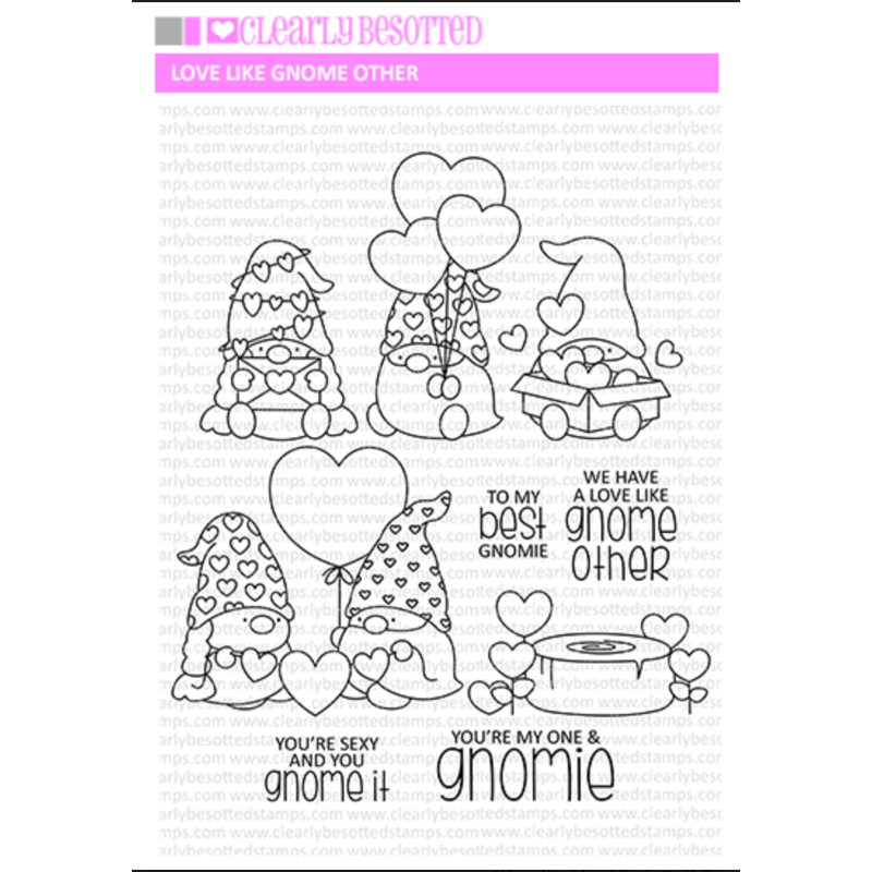 The Clearly Besotted Love Like Gnome Other Clear Stamps is a 4x6 inch clear stamp set featuring 5 adorable little love gnomes. Additionally, it includes accessories to build scenes and heartfelt sentiments. This set is perfect for creating charming and whimsical love-themed cards, scrapbook pages, and other craft projects. The cute gnomes and versatile elements offer endless creative possibilities to express love and affection in your crafting endeavors.