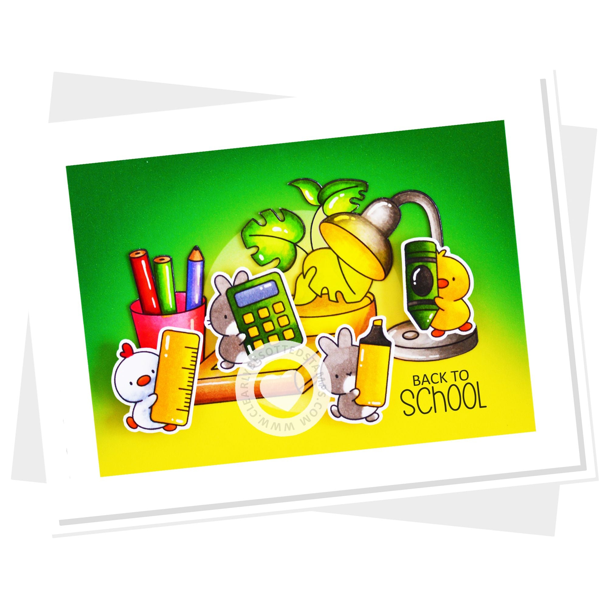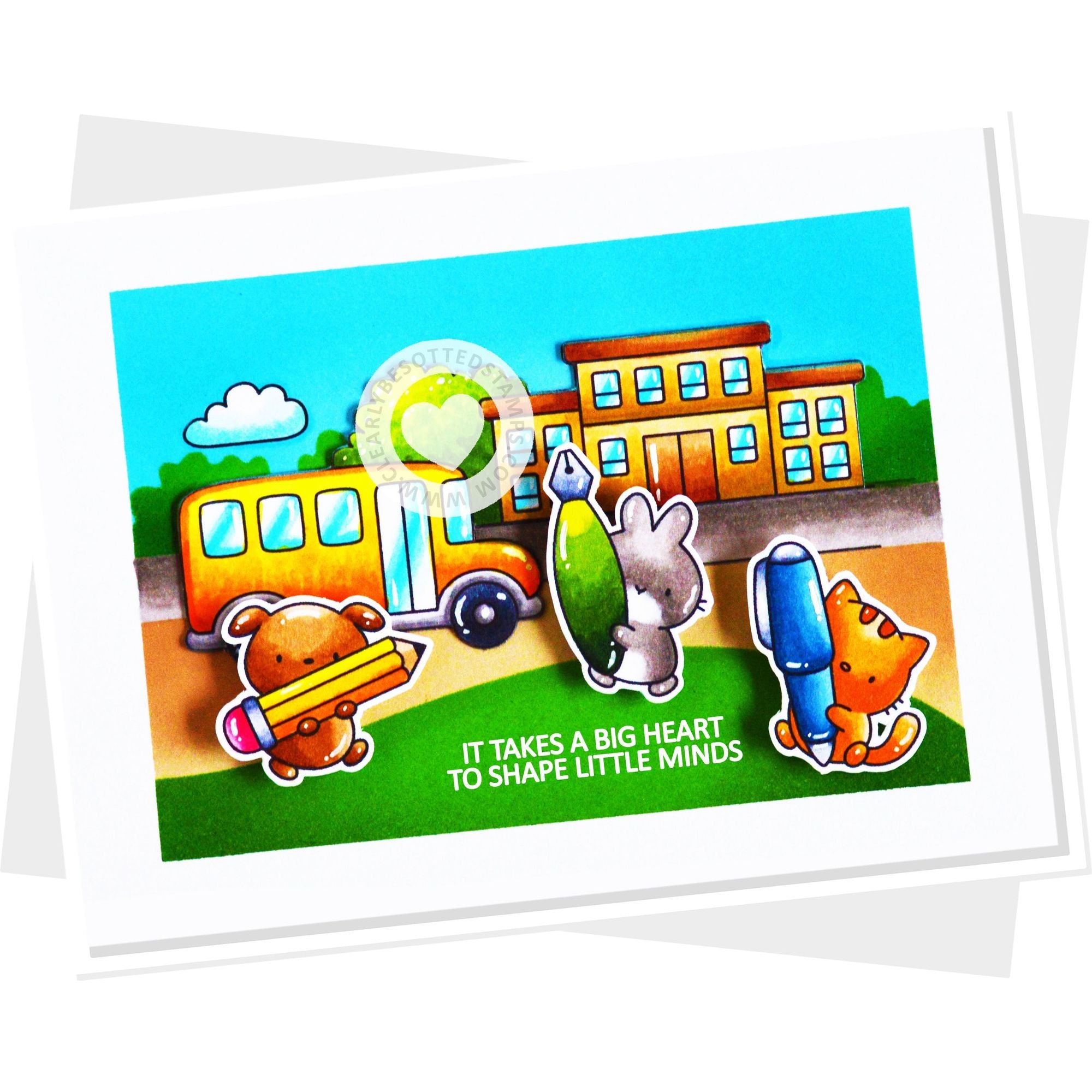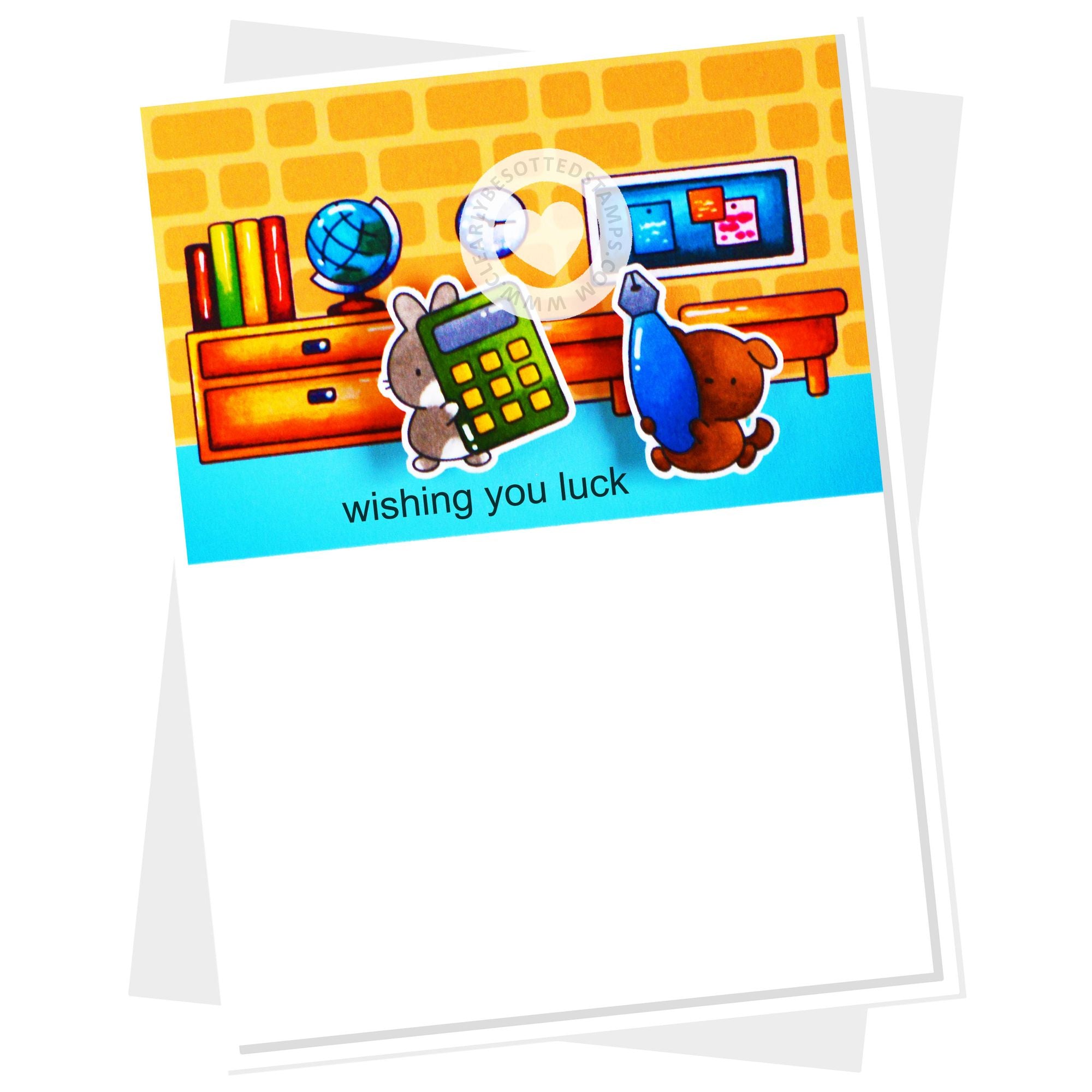 This 4x6 inch clear stamp contains 14 adorable critters are ready to write! They are holding different writing, coloring, and painting instruments. 7 sentiments included too!