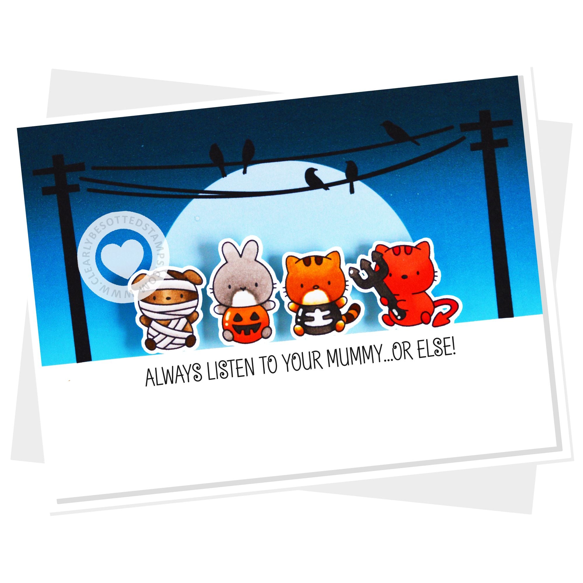 Clearly Besotted Tiny Terrors Clear Stamps is a 4x6-inch stamp set brimming with fun, featuring adorable critters in costume! Cats, dogs, rabbits, and chicks are all dressed up and ready to party.