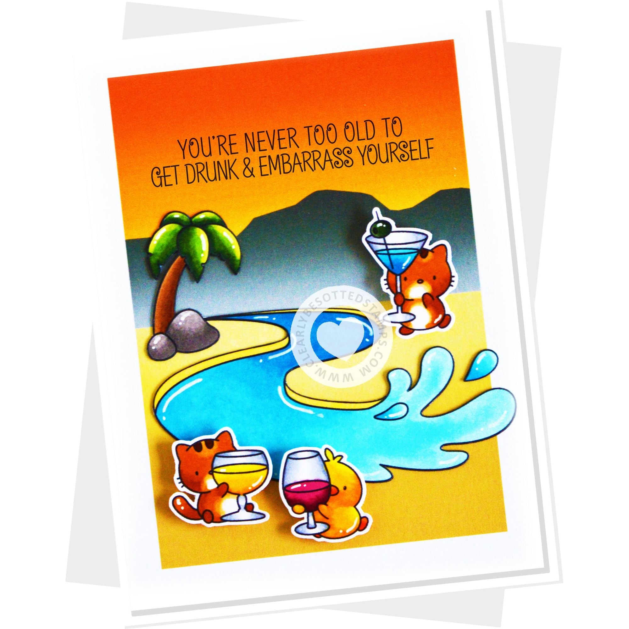 Clearly Besotted Tiny Tipples Clear Stamps is a 4x6 inch clear stamp set featuring 13 charming critters, each holding an adult beverage. The set also includes accent stamps and 8 sentiments, making it a playful addition to your creative projects.