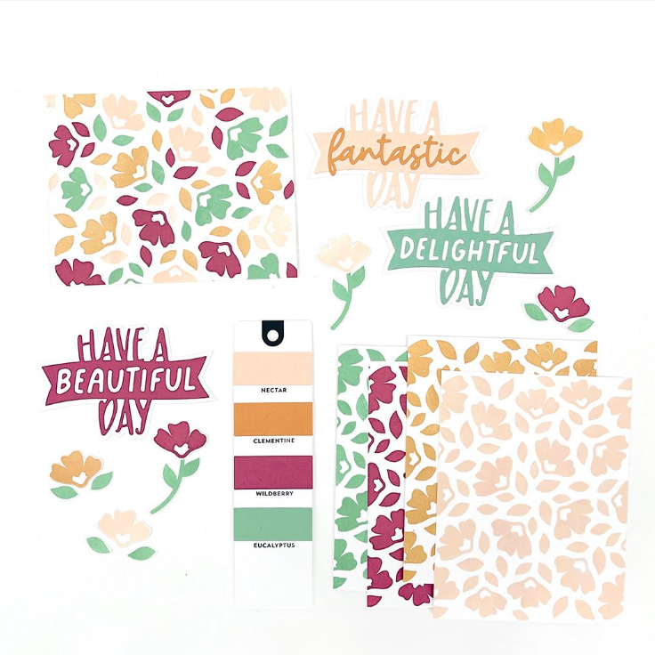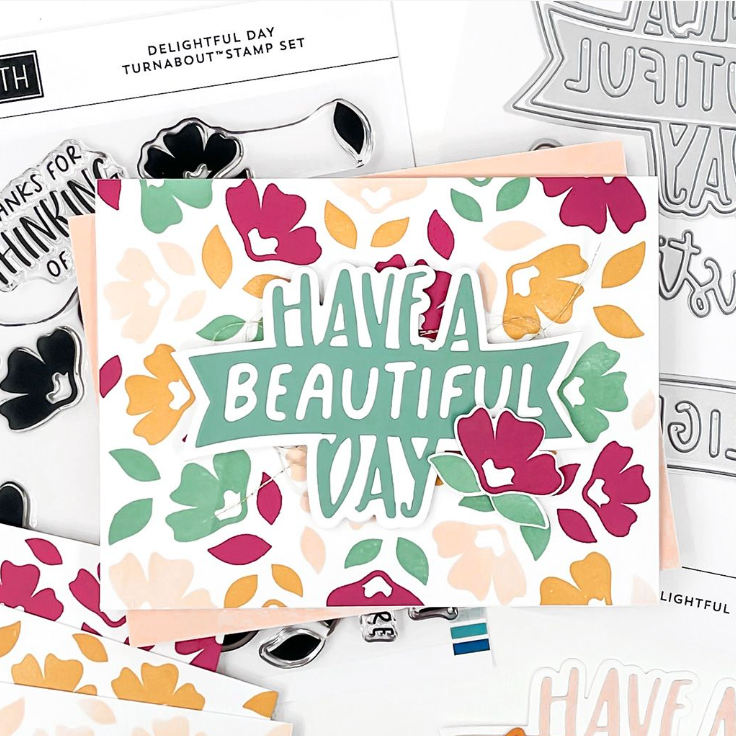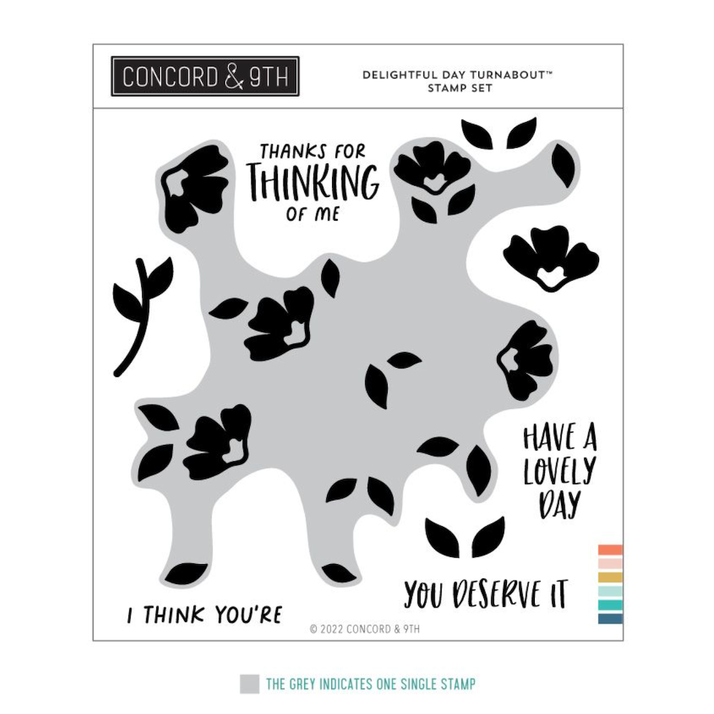 Create stunning floral backgrounds with the 6 x 6 inch Concord & 9th Delightful Day Turnabout Stamp Set! Select four of your favorite C9 colors and watch as the background transforms with each turn of your paper. Enhance your designs by cutting around the individual stamped flowers using the coordinating Delightful Day Dies.