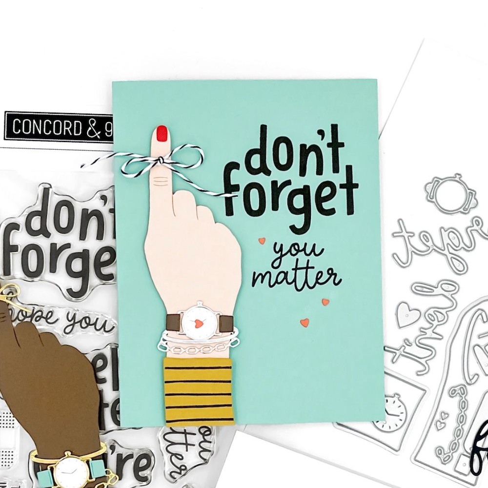 Craft thoughtful reminders with the Concord & 9th Don't Forget Die Set! This set includes 15 pieces that allow you to assemble an adorable hand and customize it with details like fingernails, a bow, jewelry, and a sleeve. Pair it with sentiments from the Don't Forget Stamp Set to complete your cards with style and care.
