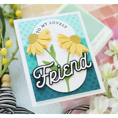 Send colorful and captivating cards with the Friendly Florals Dies! Piece together stems of flowers and arrange them directly on a card base or back them with the large oval. The 3-D ribbon banner fits nicely around the oval shape as well. Get sentiments that fit perfectly inside the oval and banner in the coordinating Friendly Florals Stamp Set 11437 or mix and match the phrases with the die cut words for more greetings and different looks. This 7x10 inch wafer thin set contains 16 dies.
