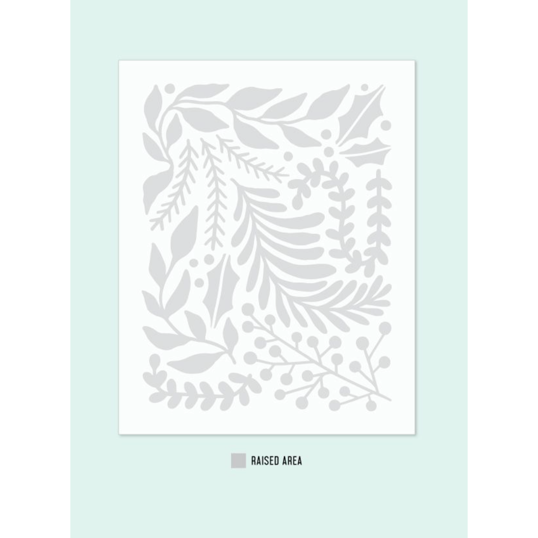 The Concord & 9th Holiday Sprigs Stencil and Embossing Bundle is perfect for adding festive foliage to your holiday projects. The Holiday Sprigs Stencil Pack includes four 4.75 x 6 inch stencils that allow you to create intricate layers of holiday greenery. You can use the stencils on their own or pair them with the coordinating Holiday Sprigs Embossing Folder to add color to the textured design. The etched registration marks make alignment easy for standalone use, while the stencils align perfectly with the embossed image for a seamless fit when used together.