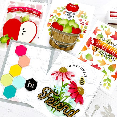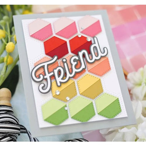 Turn your card fronts into quilts with the Honeycomb Quilt Top Dies! The large plate die is designed to cut out the entire card front to ensure that the pattern is perfectly placed each time and provides a template to piece together the various elements of your quilt. This set also contains two dies that create multiple stitched hexagon shapes, as well as three individual hexagons with cut out designs. Pick your favorite cardstock colors and background stamps and get quilting! Coordinates nicely with the Pick a Pattern Stamp Set 11440. This 7x10 inch wafer thin set contains 6 dies.