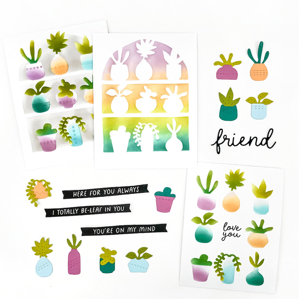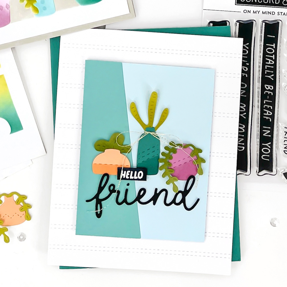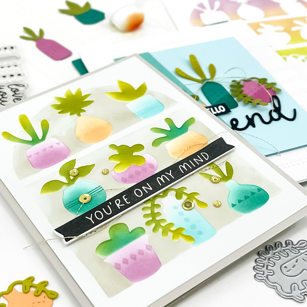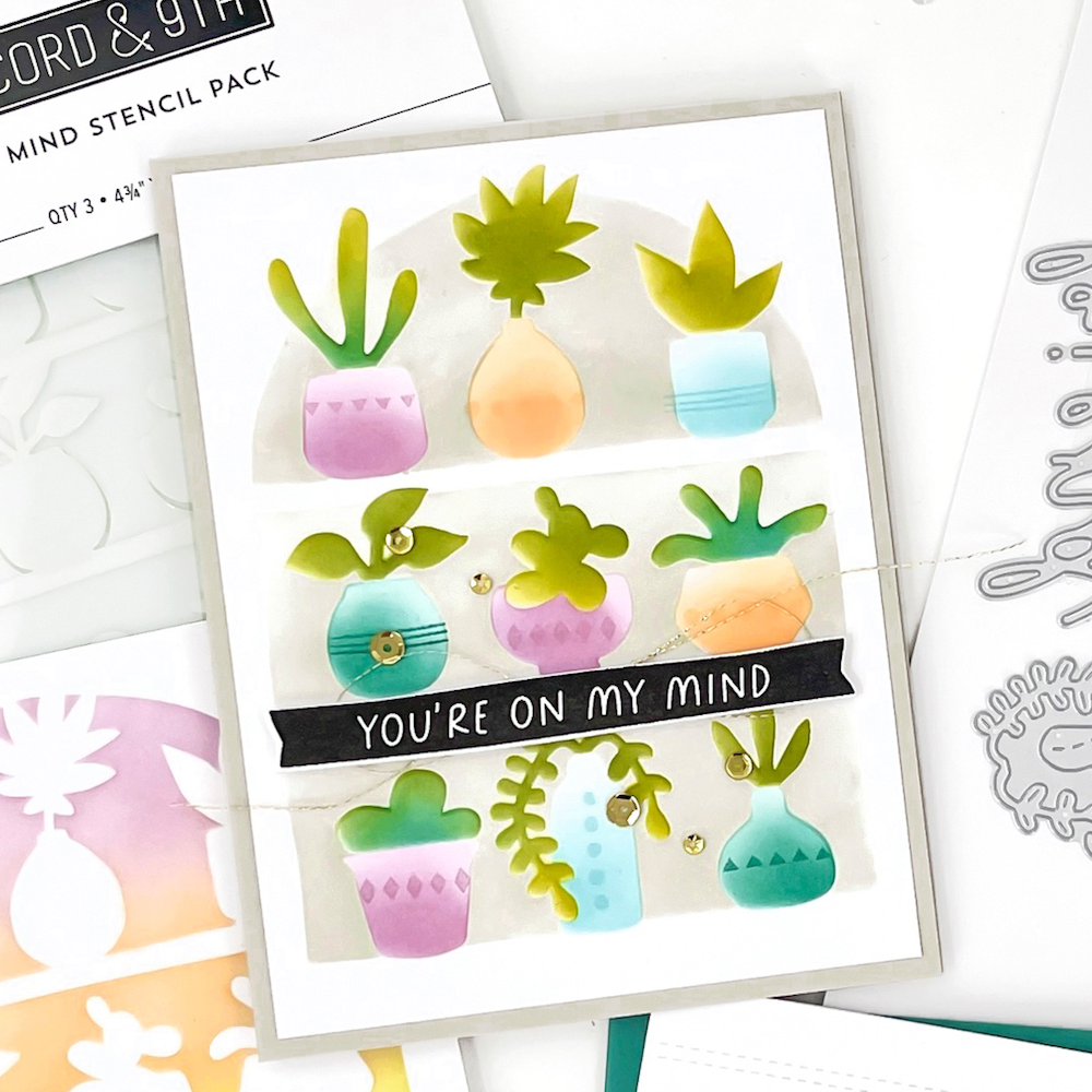 Create delightful potted plant designs with the Concord & 9th On My Mind Die Set! These dies allow you to cut out charming plant elements that can be layered over the stenciled window from the coordinating On My Mind Stencil Pack or arranged independently for unique compositions. Complete your cards with friendly sentiments from the coordinating On My Mind Stamp Set. This versatile set contains 4 high-quality dies, perfect for enhancing your card-making, scrapbooking, and other creative projects.