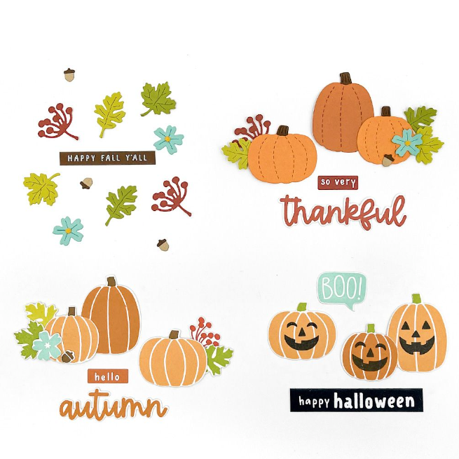 Transform your cards into vibrant pumpkin patches with the Concord & 9th Playful Pumpkins Dies. Effortlessly cut out stamped images from the Playful Pumpkins Stamp Set and craft die-cut versions of autumn imagery. This set of 22 dies offers easy coordination for creating charming fall-themed projects that capture the spirit of the season.