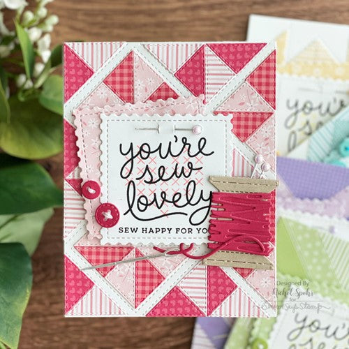 This sweet stamp set contains punny sewing sentiments and charming imagery to create cards for all your crafty friends! This 4x4 stamp contains 12 pieces. Coordinates with Sew Lovely dies 11356.