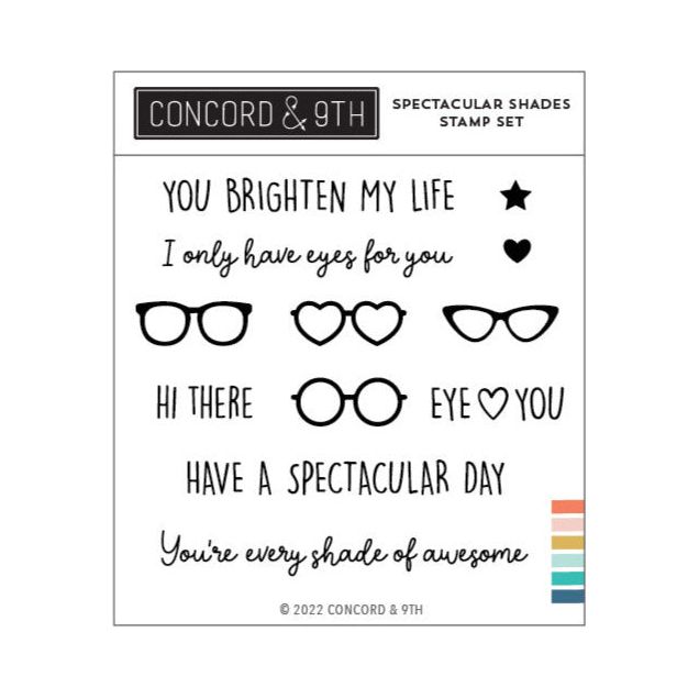 The Concord & 9th Spectacular Shades Clear Stamps set is a versatile and playful collection of 12 clear photopolymer stamps. This 4 x 4-inch stamp set features a variety of sentiments and charming eyeglasses motifs that are perfect for creating fun and stylish projects. The stamp set includes phrases such as