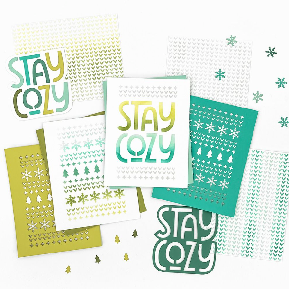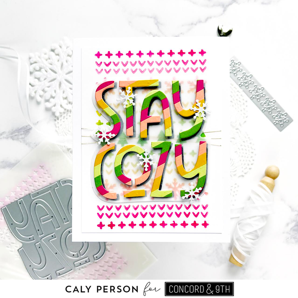 Introducing the Concord & 9th Stay Cozy Die Set! Get ready for the chilly season with these versatile dies. They cut out a large and playful 'Stay Cozy' sentiment that can be used creatively on your cards. You can also use the patterned strips to craft sweater-like designs. These dies coordinate seamlessly with the Stay Cozy Stencil Pack and pair beautifully with the Sweater Season Stamps and Dies. This set includes 6 pieces for your crafting enjoyment!