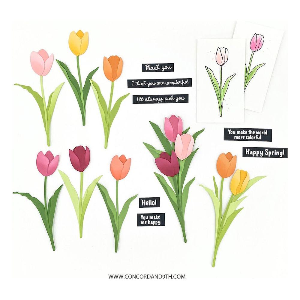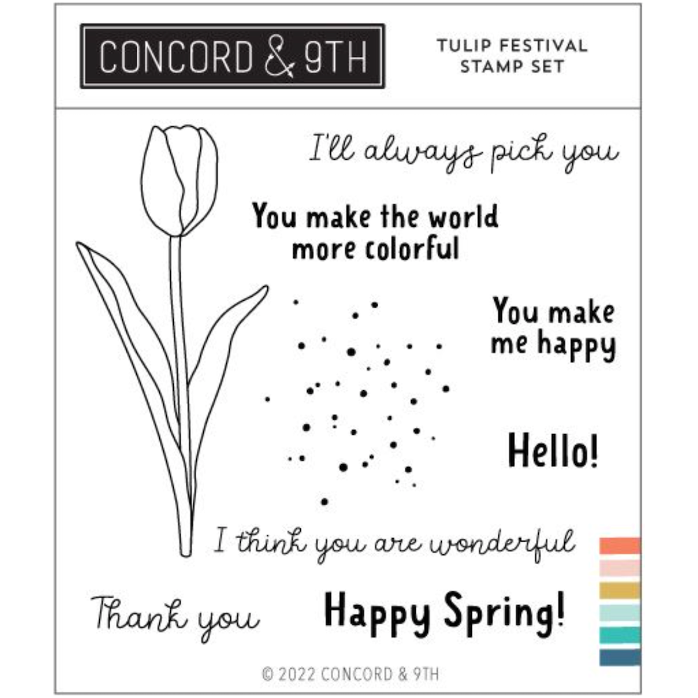 Introducing the Concord & 9th Tulip Festival Stamp and Die Bundle! Spread joy with the Tulip Festival Clear Stamp Set featuring charming sentiments like,