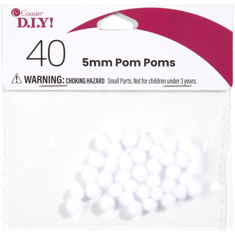 Introducing Cousin White Pom Poms - 5mm: Soft fuzzy balls for crafting kids' projects like animals, bugs, pencil toppers, button covers, ornaments, necklaces, wreaths, and beyond! Each package contains 40 of these 5mm pom poms. Please note: WARNING - Choking Hazard. Not suitable for children under 3 years.