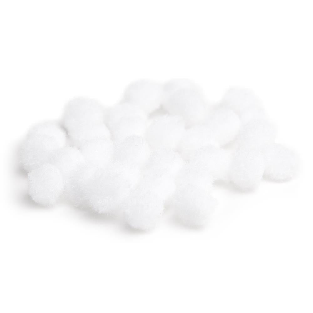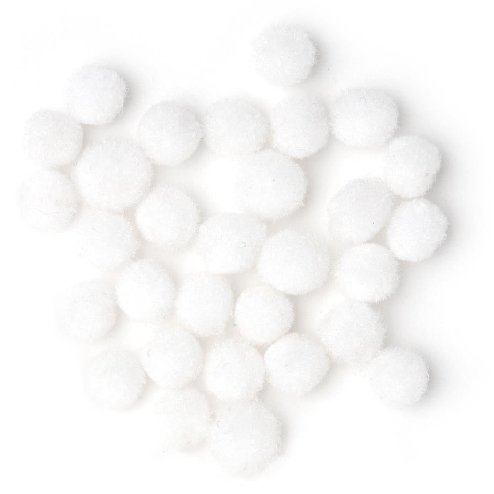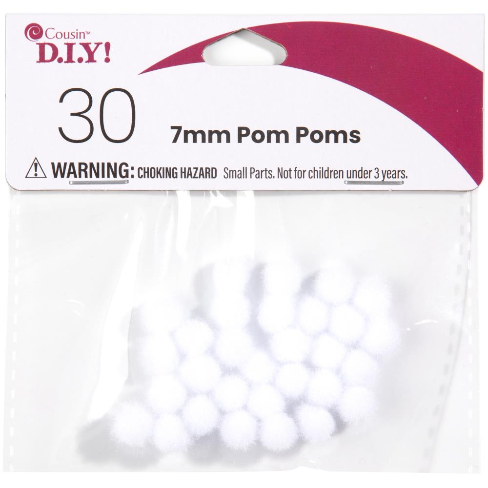 Introducing Cousin White Pom Poms: Soft, 7mm fuzzy balls for endless creativity! Ideal for crafting animals, bugs, pencil toppers, button covers, ornaments, necklaces, wreaths, and more. Each package includes 30 pom poms.