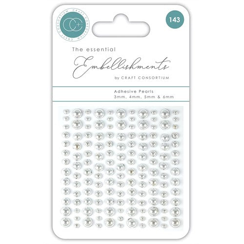A set of 143 premium adhesive pearls in assorted sizes ranging from 3mm - 6mm