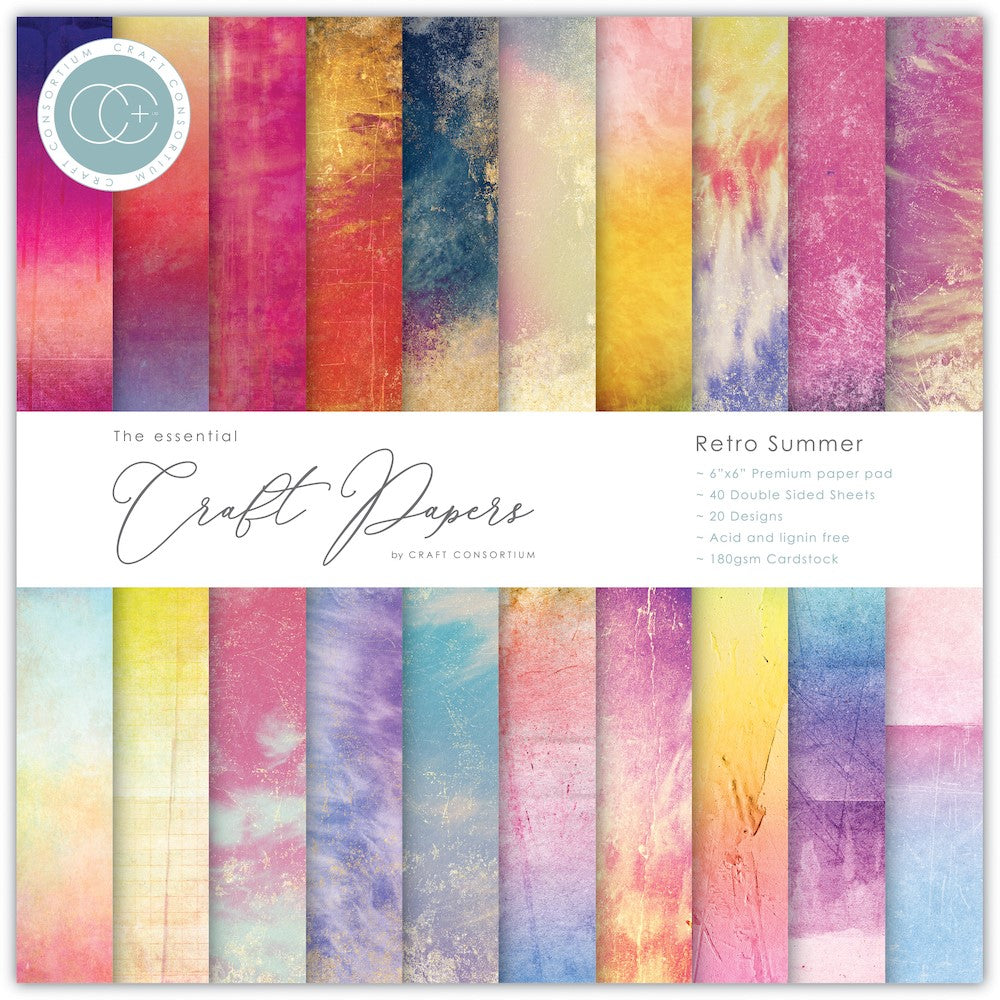The Craft Consortium Retro Summer 6 x 6 inch Paper Pad is a premium paper pad containing high-quality 180gsm paper. You'll have a total of 40 double-sided sheets, 4 of each of the 20 designs. This paper pad is perfect for all your crafting needs, as it is acid-free and lignin-free, ensuring that your projects will maintain their color and texture over time. Measuring 6x6 inches, this paper pad is compact and perfect for a variety of paper crafting projects.