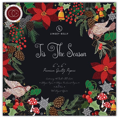 Premium 6 x 6 inch gummed paper pad with both inner front and back covers adorned in topper and ephemera elements and ephemera, the pad containing 40 double sided sheets, 4 of each of the 20 designs, in heavyweight 200gsm, acid free cardstock. Ideal for die-cutting and distressing. With elegant pearlescent and spot varnish effects. Designed exclusively in partnership with Linsey Kelly