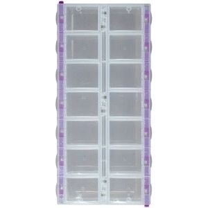 14 individual compartments with easy snap top lids packed in a convenient tray keeps your small embellishments in a neat, organized manner for easy access.