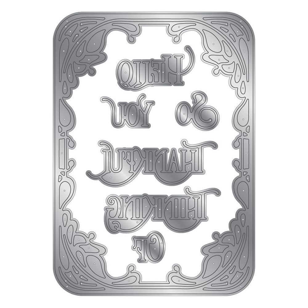 The Sheena Douglas Crafts Art Nouveau Frame metal die set contains 7 pieces, the largest of which is 4.2 x 5.9 inches. Designed to work alongside coordinating embossing folders and stamps to create the perfect card.