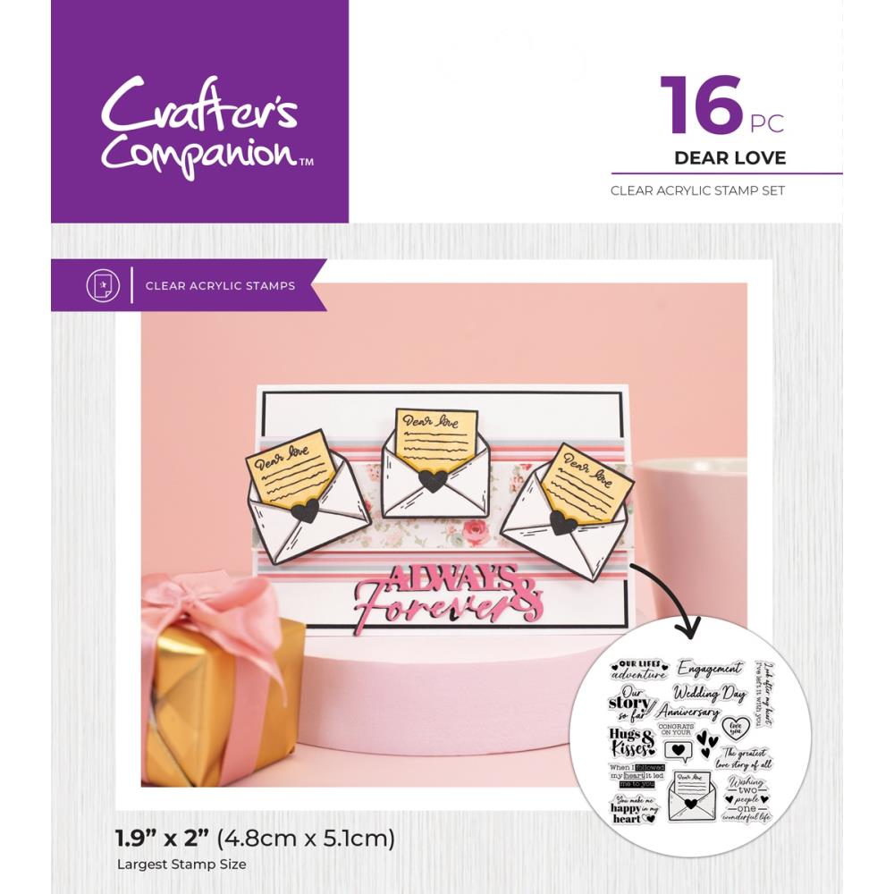Whether you’re crafting love letters or romantic greetings, the Dear Love Clear Acrylic Stamps by Crafter’s Companion is perfect to add extra affection to your next project.