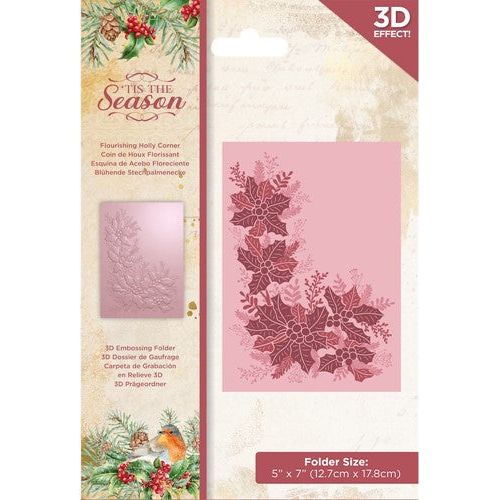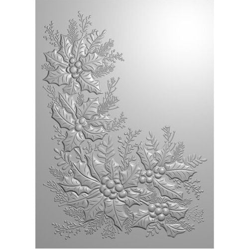 Crafter's Companion Folourishing Holly Corner 3D Embossing Folder tts-ef5-3d-fhc*