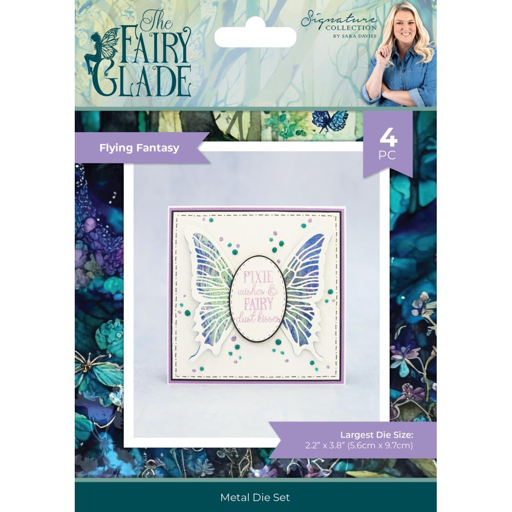 Indulge in intricate designs with Crafter's Companion Flying Fantasy Dies. These four metal dies, the largest sized at 2.2 x 3.8 inches, feature butterfly and fairy wings for a touch of whimsy. Compatible with leading die-cutting and embossing machines, these dies can cut through paper, card, tissue, vellum, and foil. Part of the Sara Signature Fairy Glade collection, this die set is perfect for adding delicate details to your handmade cards, gift boxes, bags, scrapbook pages, and more. Take your crafting to the next level with the Sara Signature Fairy Glade Metal Die - Silhouette Pixies.