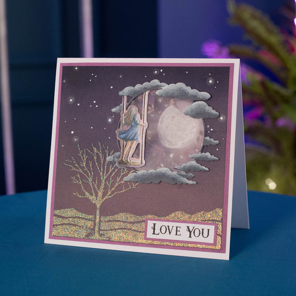 The Sheena Douglass Full Moon die features a circular shape with cloud decorations along the edges. Its size is 4.3 x 3.9in(10.9cm x 9.9cm), making it ideal for cardmaking and scrapbooking. Use it to create a stunning frame for stamped designs or sentiments. With its detailed design, this die will add a touch of midnight magic to your projects. No need for scissors - simply use a die-cutting machine and follow the Sandwich Guide in the instruction manual to effortlessly cut out your desired shape on cardstock or paper.