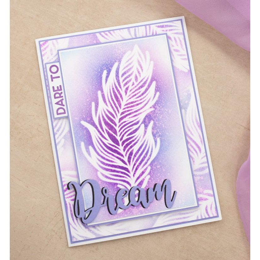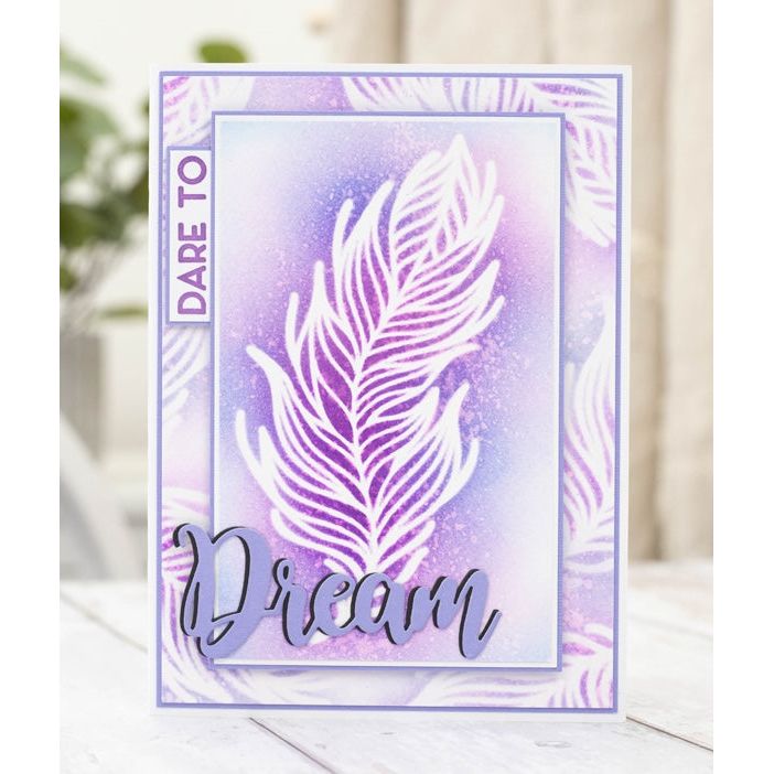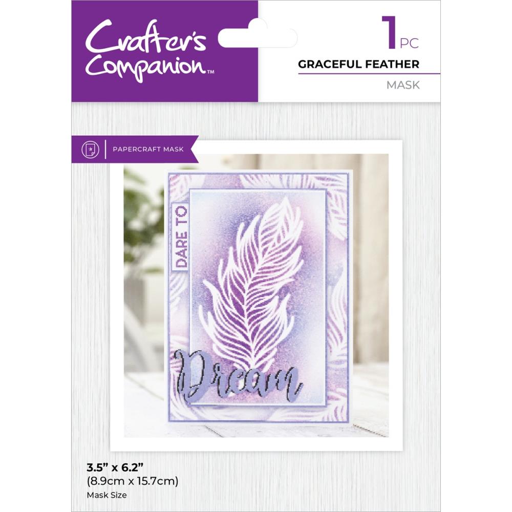 This Crafter's Companion Graceful Feather mask is 3.5 x 6.2 inches, making it ideal for mixed media projects, cards, and other crafts. Add a touch of elegance and texture to your creations with this beautifully designed mask.