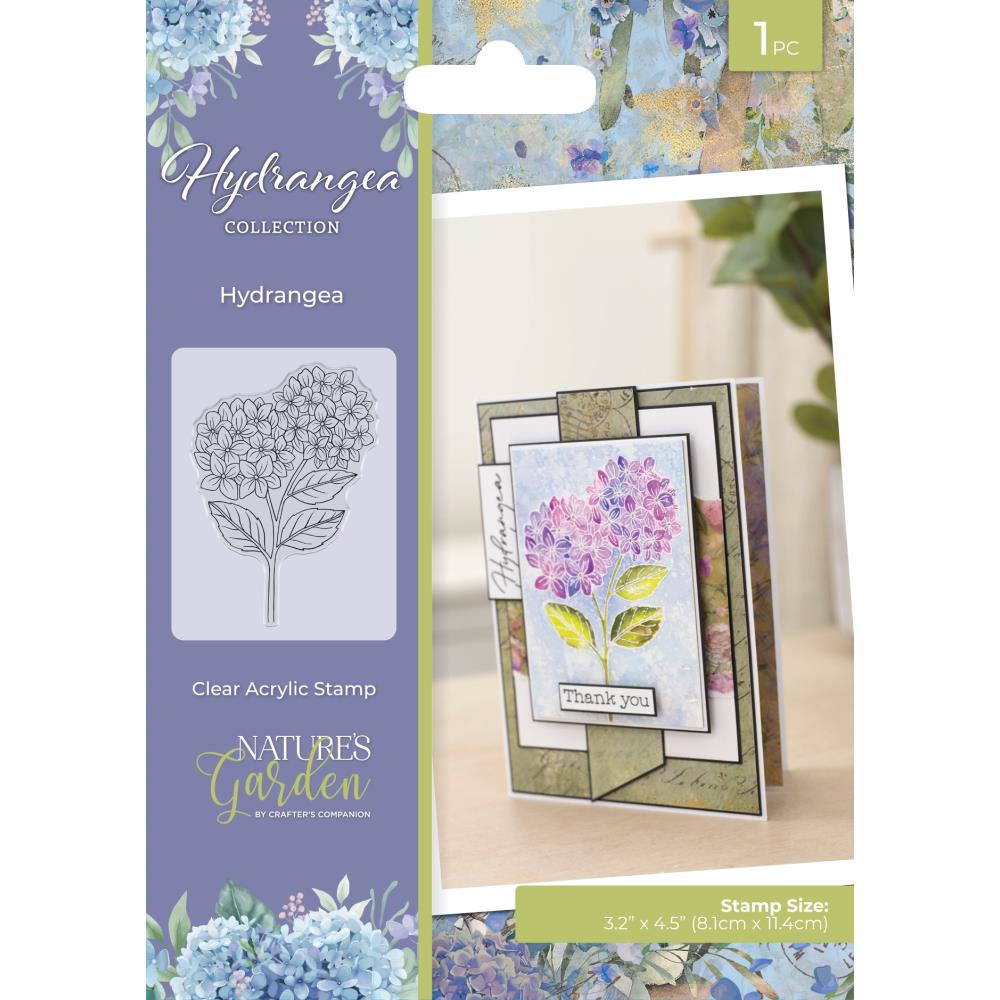 Introducing the Nature Garden-Hydrangea Collection. Bring the beauty of hydrangeas to all your craft projects with this clear acrylic stamp. Perfect for adding delicate and elegant touches to any occasion. Stamp size is approximately 3.2 x 4.5 inches.