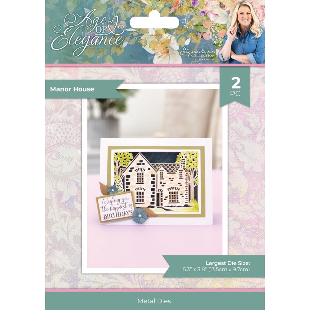Create stunning and elegant cards with the Manor House dies from Crafter's Companion. This set includes two metal dies that perfectly cut out an intricate country house design, complete with detailed windows, roof tiles, and brickwork. Compatible with Gemini II and Gemini Midi machines, these dies are perfect for cutting materials such as card, paper, tissue, vellum, and foil. Part of the Sara Signature Age of Elegance collection, these dies are ideal for celebrating milestone moments or creating statement cards for any occasion. The largest die size is 5.3 x 3.8 inches.