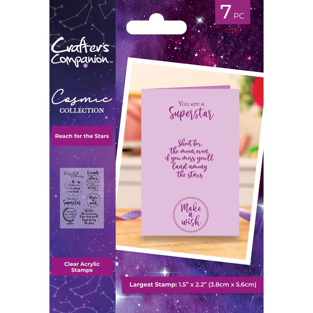 Craft stunning projects inspired by the vastness of the universe with the Cosmic Designer Collection. Featuring a cosmic color scheme, the papers showcase striking shades of pink, purple, and aqua set against a deep navy sky. Complement your designs with carefully selected pearl papers, mirror card, and glitter card for seamless mats and layers. This package includes 7 clear acrylic stamps, with the largest measuring 1.5 x 2.2 inches.