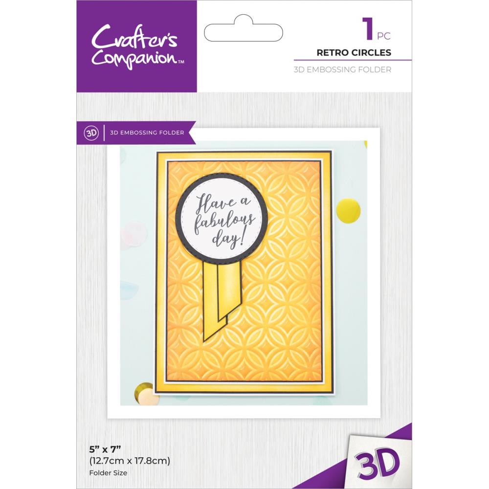 Elevate your card-making with Crafter's Companion Retro Circles 3D Embossing Folder. The bold geometric pattern adds a unique touch to any occasion. Customize your designs with coloring techniques or toppers and create memorable cards for birthdays and more.