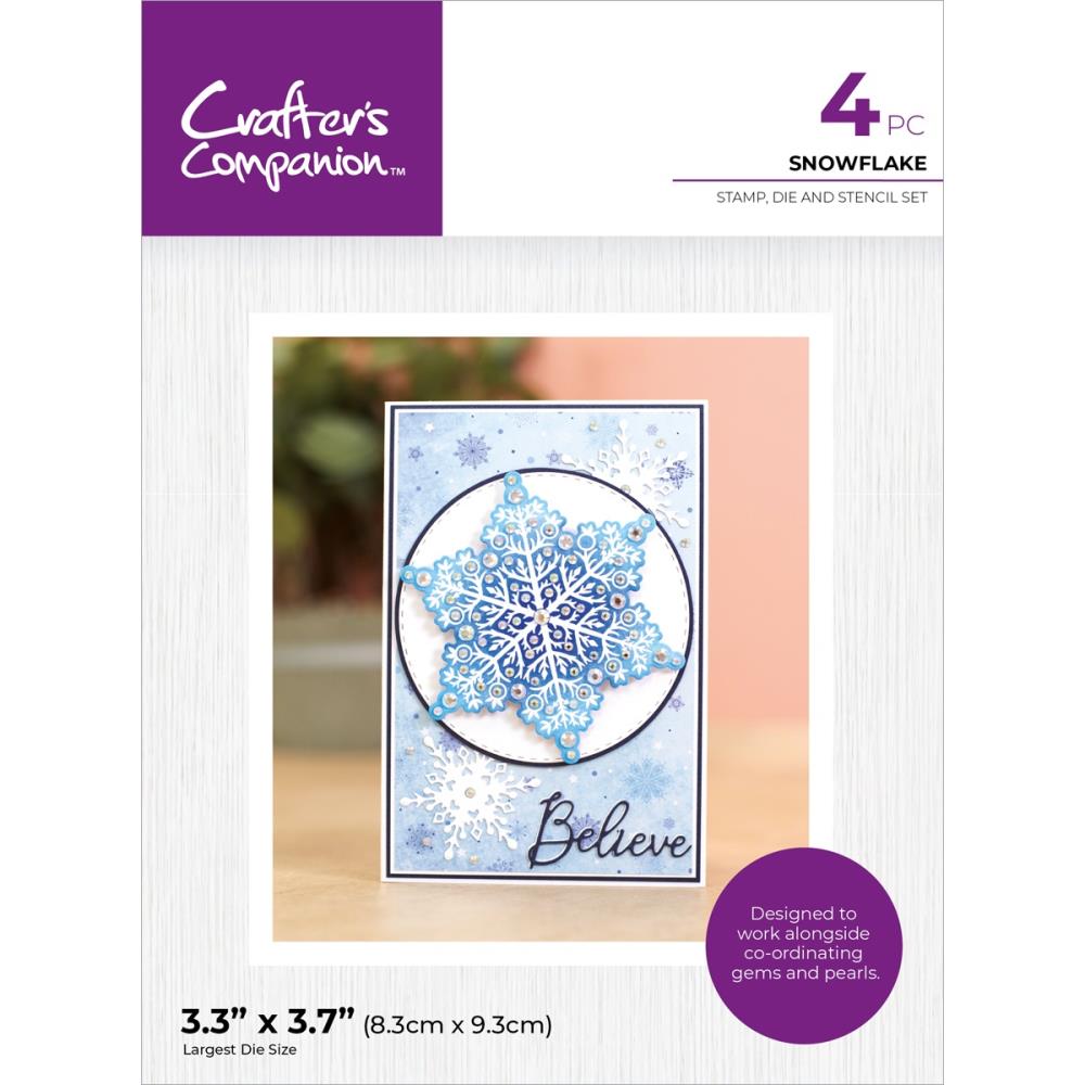 Elevate your Christmas cards to a new level with the Crafter's Companion Snowflake Stamp, Die, And Stencil Set. Designed by professionals for professionals, this versatile set allows you to beautifully stamp and cut out a detailed snowflake illustration and 'Believe' sentiment. Use the coordinating stencil to effortlessly add sparkling gem and pearl decorations, and achieve perfect accuracy with the included specialist tool. Compatible with the Gemini II and leading machines on the market, this set is a must-have for any crafter's collection. Don't forget to pair it with gem and pearl packs from the Touch of Sparkle collection for a truly exquisite finish.