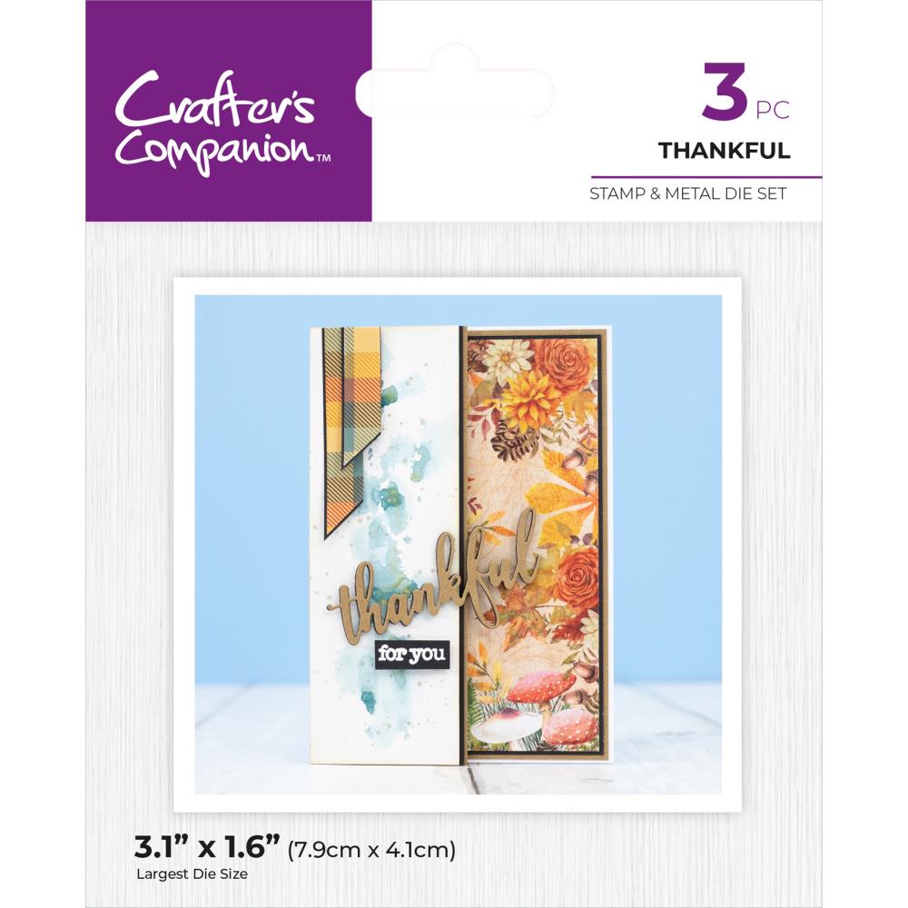 Elevate your autumn and Thanksgiving crafts with the Crafter’s Companion Thankful Stamps and Die Set. Designed by industry experts, this collection includes a die to cut out the word 'thankful' and two clear acrylic stamps featuring Thanksgiving sentiments. Use with compatible die-cutting and embossing machines for precise and delicate designs. The set also includes a die size of 3.1 x 1.6 inches and a largest stamp size of 2 x 1 inch to suit various projects. With classic fall foliage designs in stunning autumn shades, this set is perfect for creating wreaths, Thanksgiving turkeys, and pumpkin toppers. Let your projects give thanks with the Thanksgiving Collection by Crafter's Companion.
