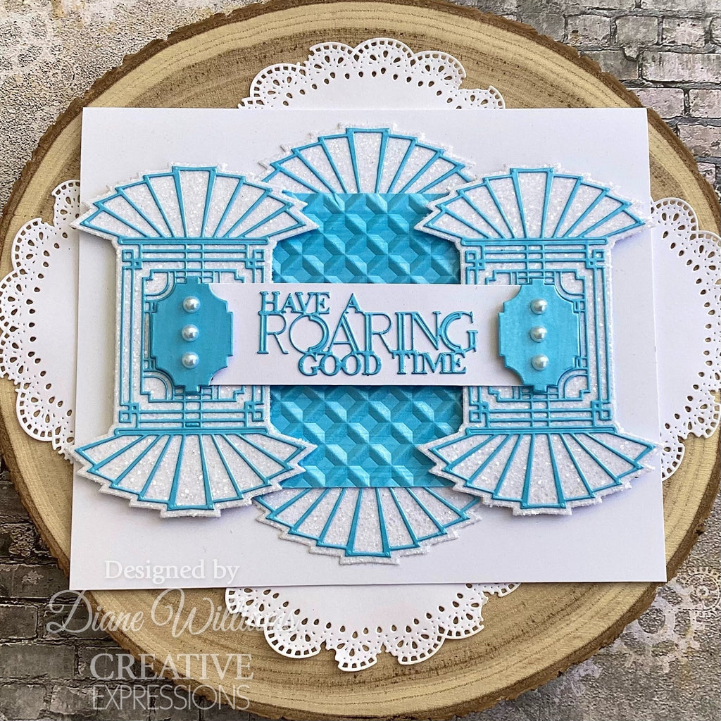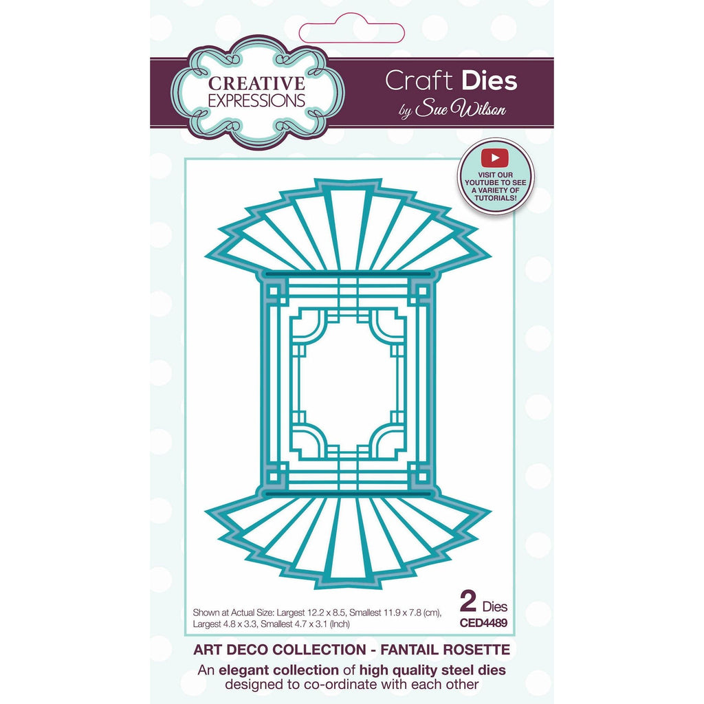 Add an elegant touch to your crafting projects with the Creative Expressions Art Deco Fantail Rosette Dies, part of Sue Wilson's Art Deco Collection. These high-quality, wafer-thin steel dies are perfect for creating gorgeous focal points or adding backgrounds or frames to cards or scrapbook pages. The set includes 2 dies, with the largest measuring approximately 4.7 x 3.1 inches. The centerpiece features a modern rectangle with lines and squares inside, while on the top and bottom are shapes resembling fan tails. You can cut out pieces to create unique shapes and designs for your creative endeavors. Compatible with most die-cutting machines, these dies ensure precise and beautiful results every time.