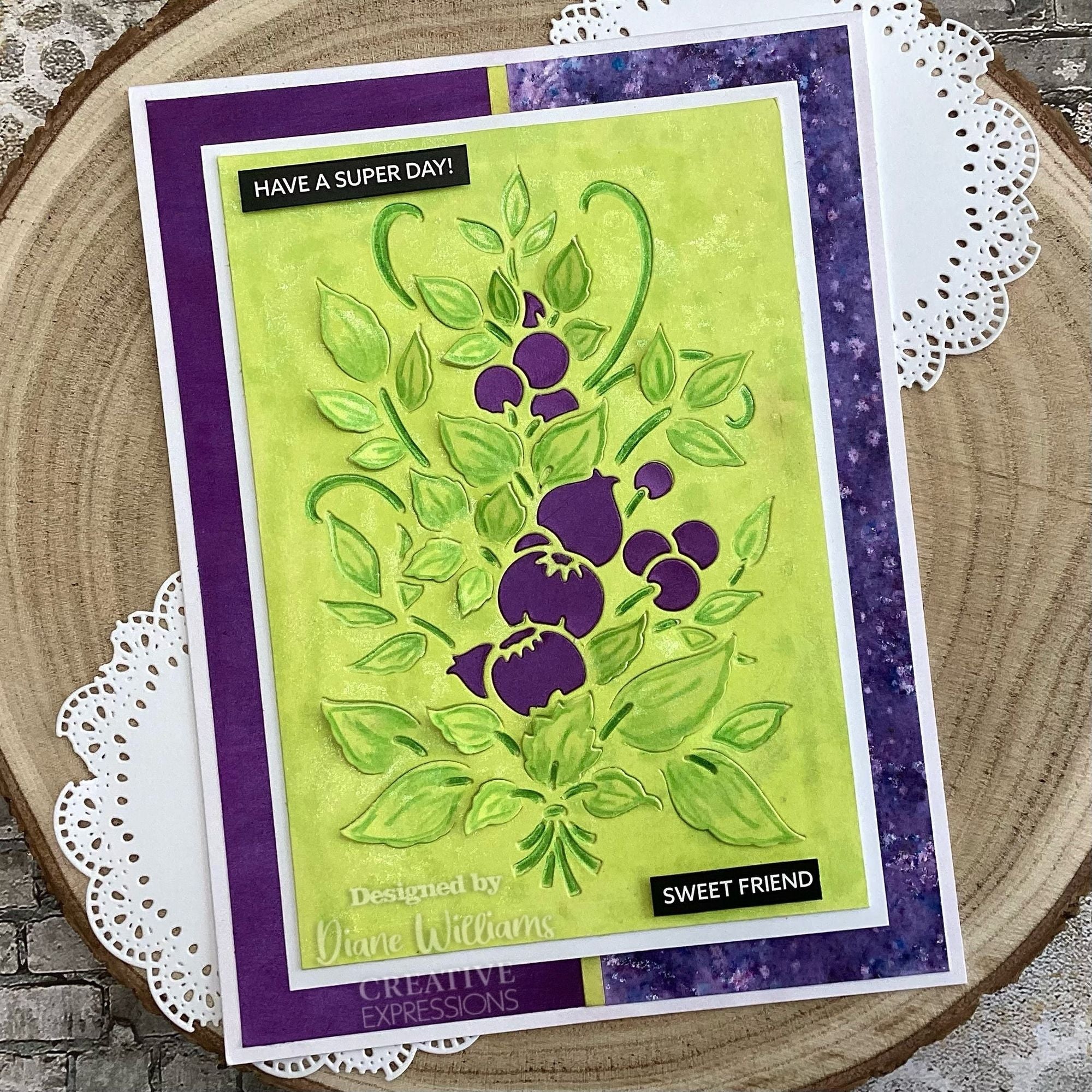 The Blueberry Bliss Paper Cuts Cut & Lift Die from Creative Expressions, designed by Cathie Shuttleworth, is a high-quality steel die measuring approximately 3.7 x 5.8 inches. This single die features a beautiful blueberry bush, complete with leaves and berries, and is perfect for creating a stunning scene on your card front with just one cut. The die creates the look of hand-cut paper, making it an excellent choice for both scrapbooking and card-making. Compatible with most home die-cutting machines, this versatile die can help you create fantastic images that preserve your beautiful memories.