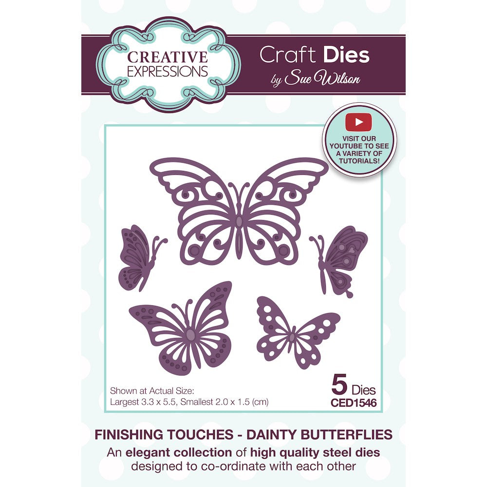 A lovely set of butterfly dies that cut and emboss in one. Great set of dies that you can use to create a fluttering display adding a finishing touch to floral designs or they can be used on their own. Compatible with most home die cutting machines. Includes 5 dies. Largest is approximately 1.3 x 2.2 inches and smallest is approximately 0.8 x 0.6 inches.
