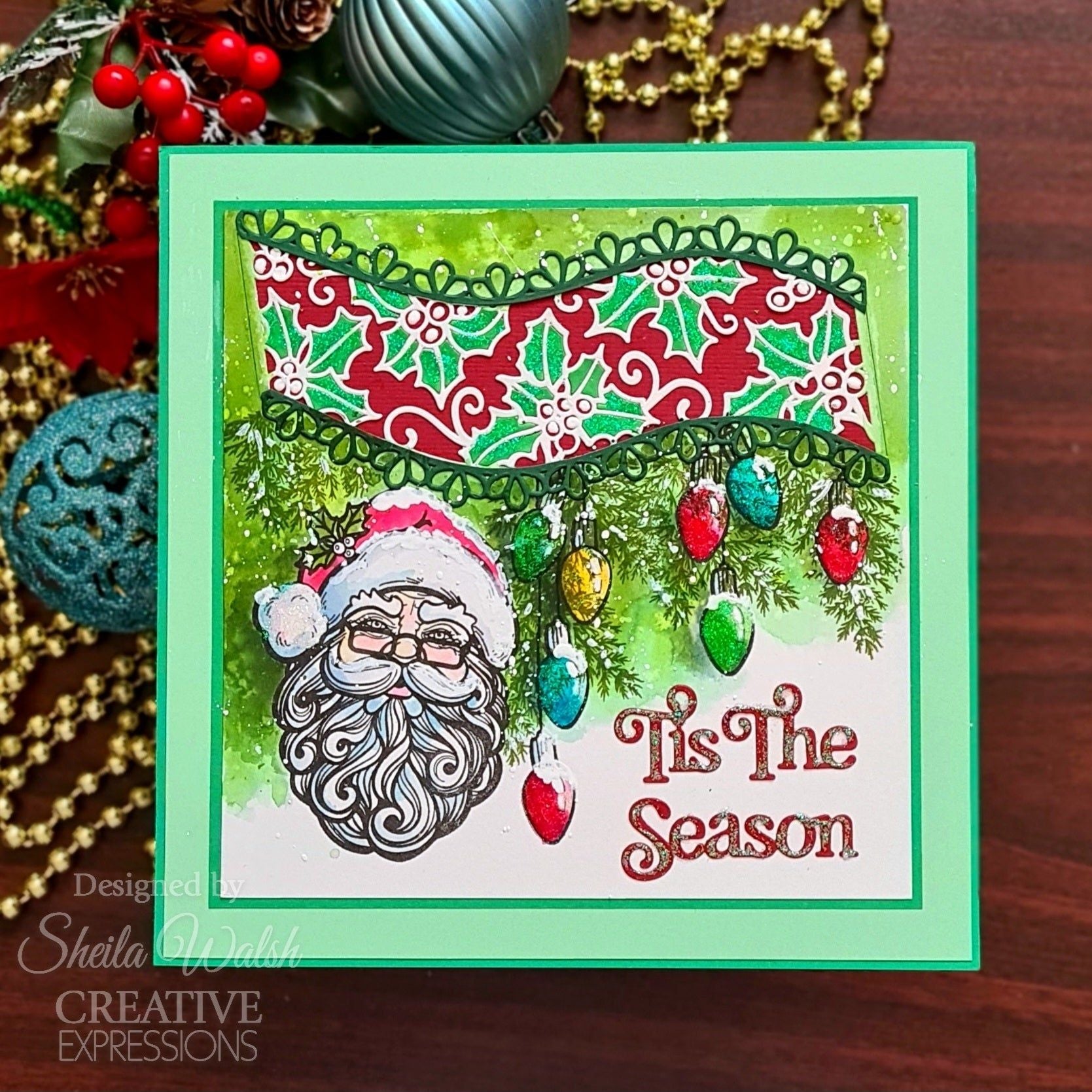 The Creative Expressions Holly Ribbon Wave from Sue Wilson's Festive Collection is a stunning die set. Crafted from high-quality steel, these dies are compatible with most major die-cutting machines. The set includes 5 dies, with the largest die measuring approximately 5.5 x 2.0 inches. Designs feature versatile pieces that can be used individually or together, such as a thick wavy line adorned with holly leaves, berries, and swirls, an outline of the wave, and a decorative loopy border.