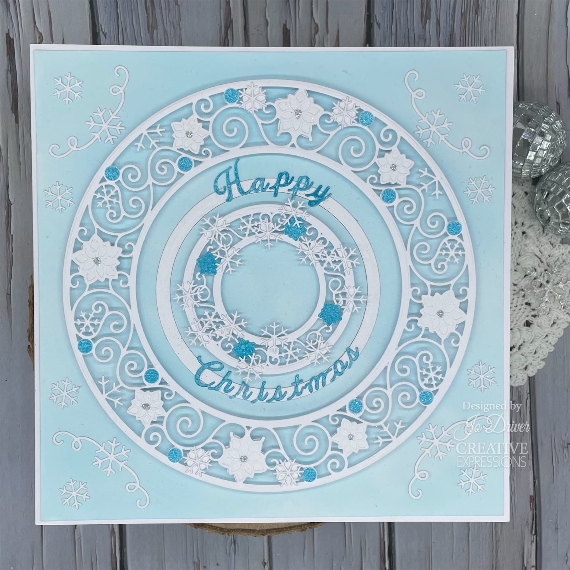 The Creative Expressions Poinsettia Rings Dies were designed by Jamie Rodgers for his festive collection. This versatile die set offers endless possibilities for frames, backgrounds, and more in your holiday crafting projects. Crafted with high-quality steel, these dies are designed to work together with the rest of the collection, but they can also be used independently on any project. The set includes 13 dies, with the largest ring measuring approximately 6.8 inches in diameter. The Poinsettia Rings Dies feature three rings filled with exquisite flourishes and flowers, providing a beautiful focal point for your designs. The set also includes simple circles and corner embellishments featuring poinsettia blooms, snowflakes, and additional flourishes. These elements can be nested together to create intricate compositions or used individually to add elegant touches to your projects.