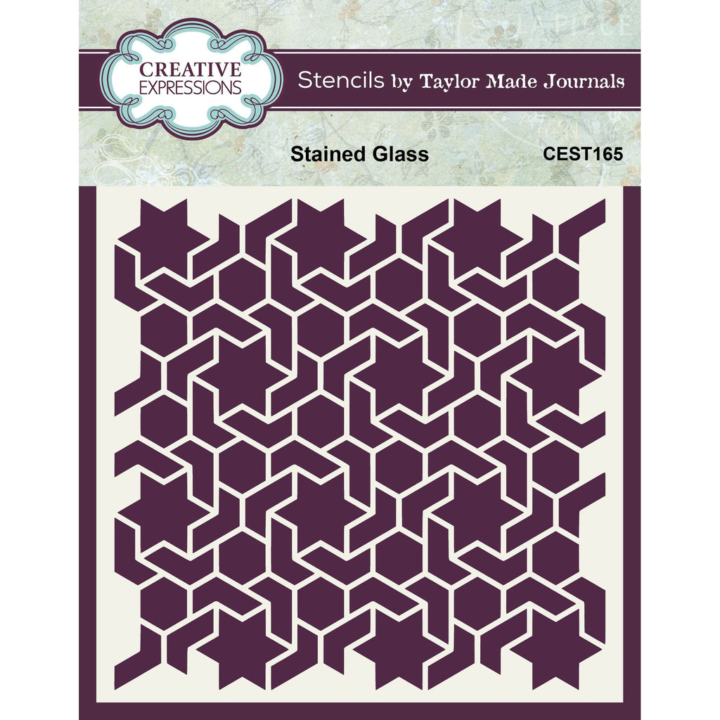 The Stained Glass stencil from Taylor Made Journals Festive Collection is perfect for mixed media, card making, scrapbooking, textile art, and more. The stencils can be used together or on their own. Made from durable mylar, this stencil can be used with paint, ink, ink pads, chalk, and misters. It’s a great addition to your die-cutting and embossing machine. The stencil measures approximately 6 x 6 inches and features geometric shapes of stars and hexagons, creating optical illusions, making it ideal for adding intricate and eye-catching designs to your projects.