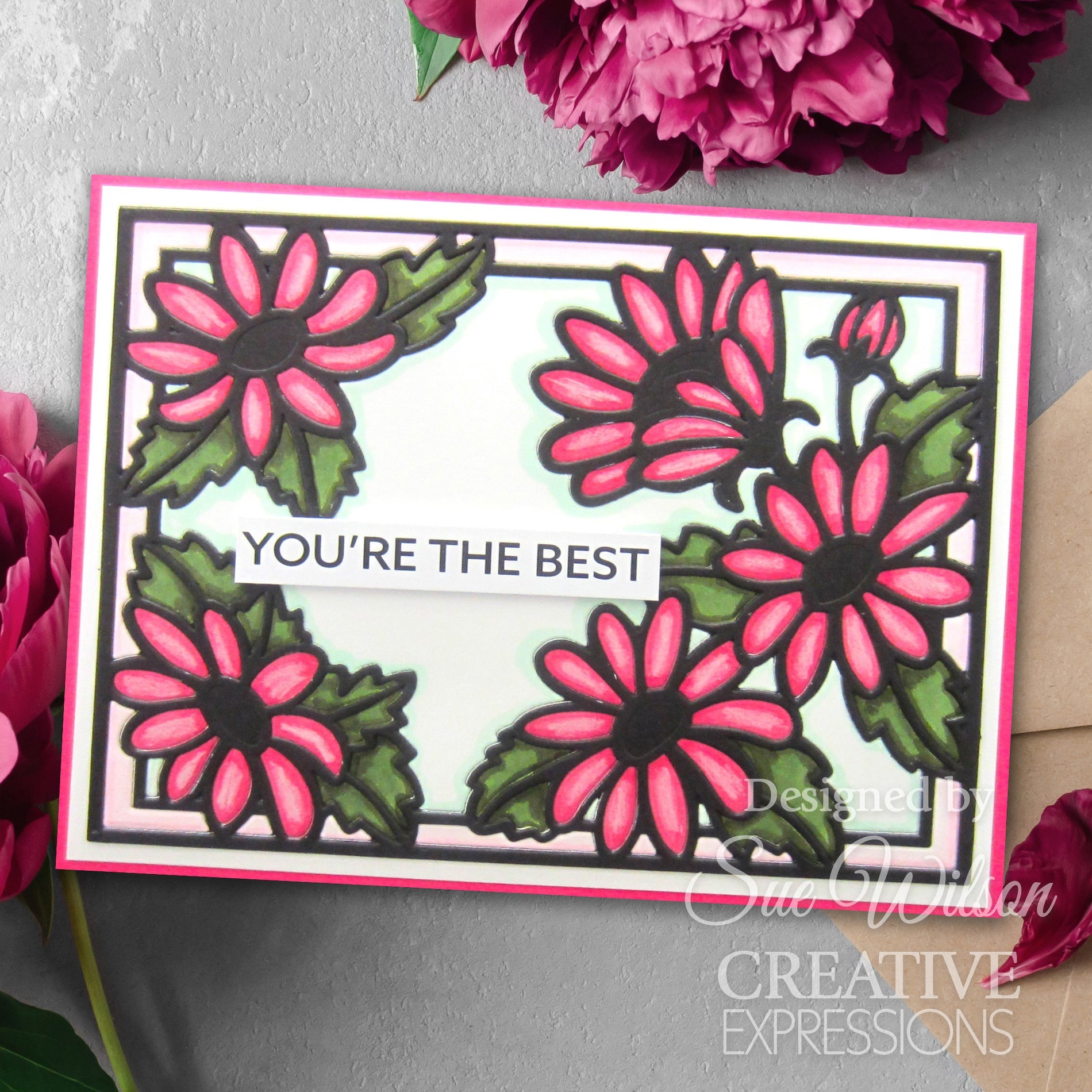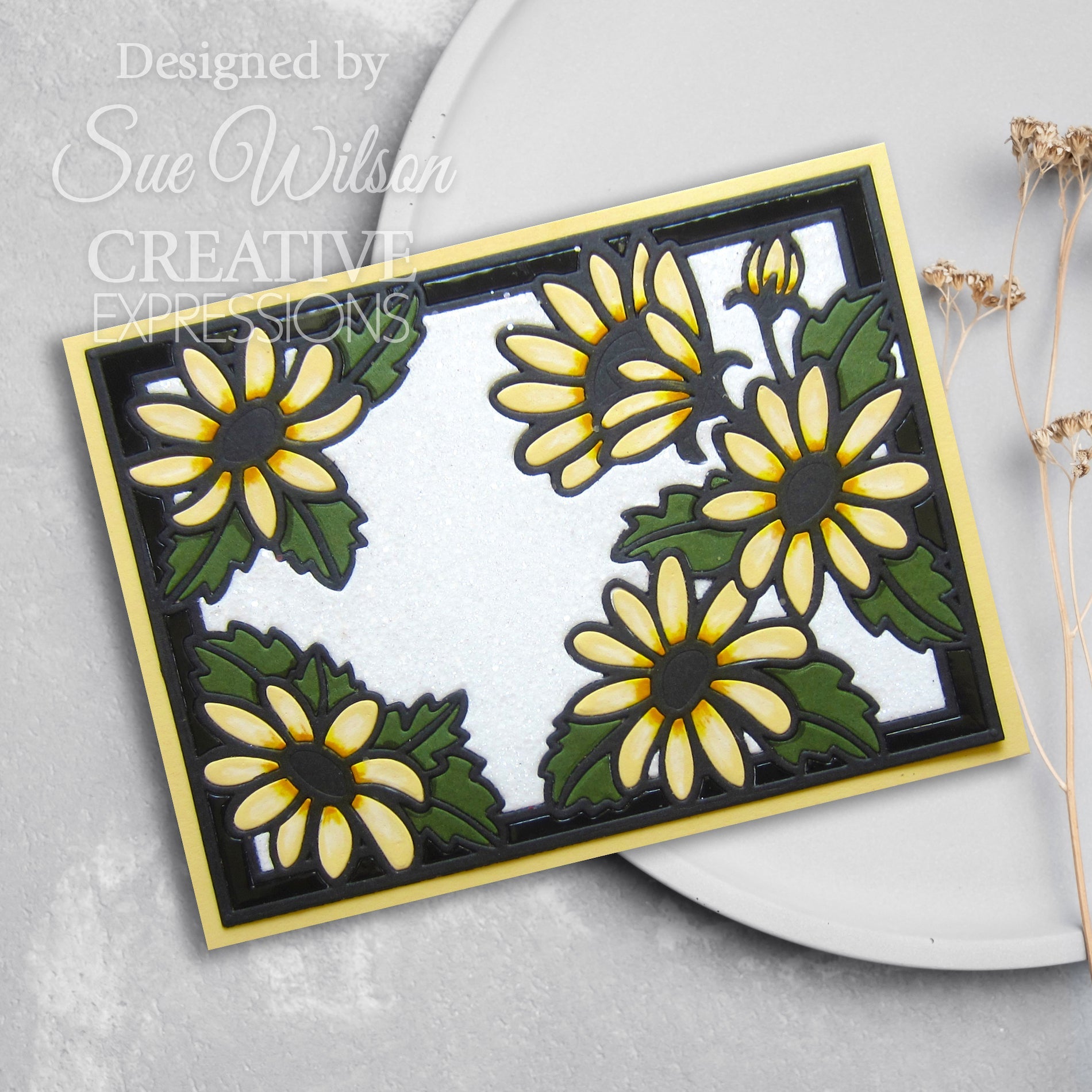 This Creative Expressions Wild Daisy Cover Plate Die, designed by Sue Wilson for the Frames & Tags Collection, offers a delightful way to embellish your projects. This high-quality steel die, compatible with most leading die-cutting machines, measures approximately 5.1 x 3.9 inches. It features a charming rectangle frame adorned with cheerful daisy blooms and leaves, creating a fresh and lively botanical motif. The intricately designed cover plate includes a small opening in the middle, perfect for highlighting sentiments or focal points in your creations. Whether used as a standalone frame or incorporated into layered designs, this die adds a touch of whimsy and charm to your cards, scrapbook layouts, and other papercraft projects.