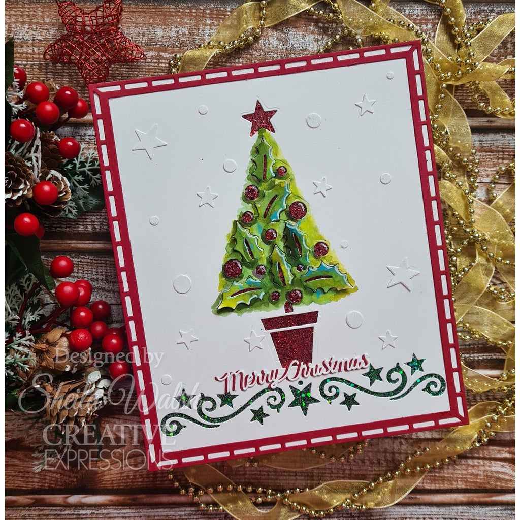 The Creative Expressions Yuletide Spruce Cut and Lift Dies are part of the Paper Cuts Cut & Lift Collection designed by Cathie Shuttleworth. This set includes three dies that feature a festive tree design made with holly leaves, baubles, and a star on top. The main tree die has cut and lift sections, allowing you to lift the holly leaves and add dimension to your project. The two additional dies in the set can be used as embellishments or borders. One die features flourishes with star accents, while the other has holly leaf accents that can be lifted for a visual effect. Cut and Lift Dies create the look of hand-cut paper, making them perfect for scrapbooking and card making. Made from high-quality steel, these versatile dies are compatible with most home die-cutting machines. The set includes three dies, with the largest measuring approximately 5.1 x 2.6 inches and the smallest measuring approximately 5.5 x 0.9 inches. For precise coloring of the die-cut sections, you can use the coordinating Yuletide Spruce Companion Coloring Stencil (cest125). This stencil is designed to align perfectly with the die-cut design, making it easy to add vibrant and detailed colors to your project.